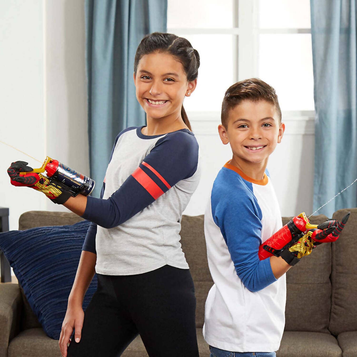Kids can imagine defending the world like a super hero with this Spider-Man Super Web Slinger inspired by the Marvel Cinematic Universe that includes the newest Spider-Man movie. The perfect add-on to a Spider-Man costume or any super hero costume! Pressing a button on the Web Slinger releases web so kids can imagine they are Spider-Man blasting villains and saving the world!