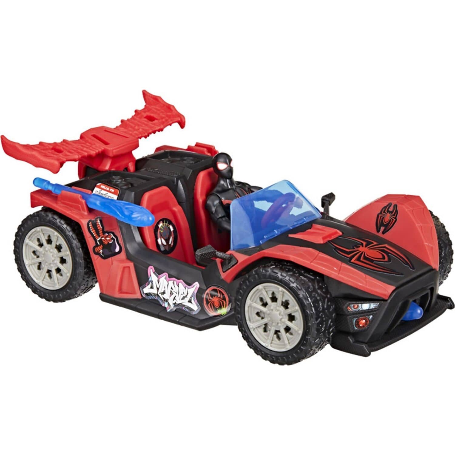 Imagine speeding into web-blasting action and adventure with the Marvel Spider-Man VenomVersus Miles Morales Remix Racer! The 4-inch-scale (10 cm) Miles Morales and vehicle toys are part of Hasbro’s exclusive Epic World of Action Series.