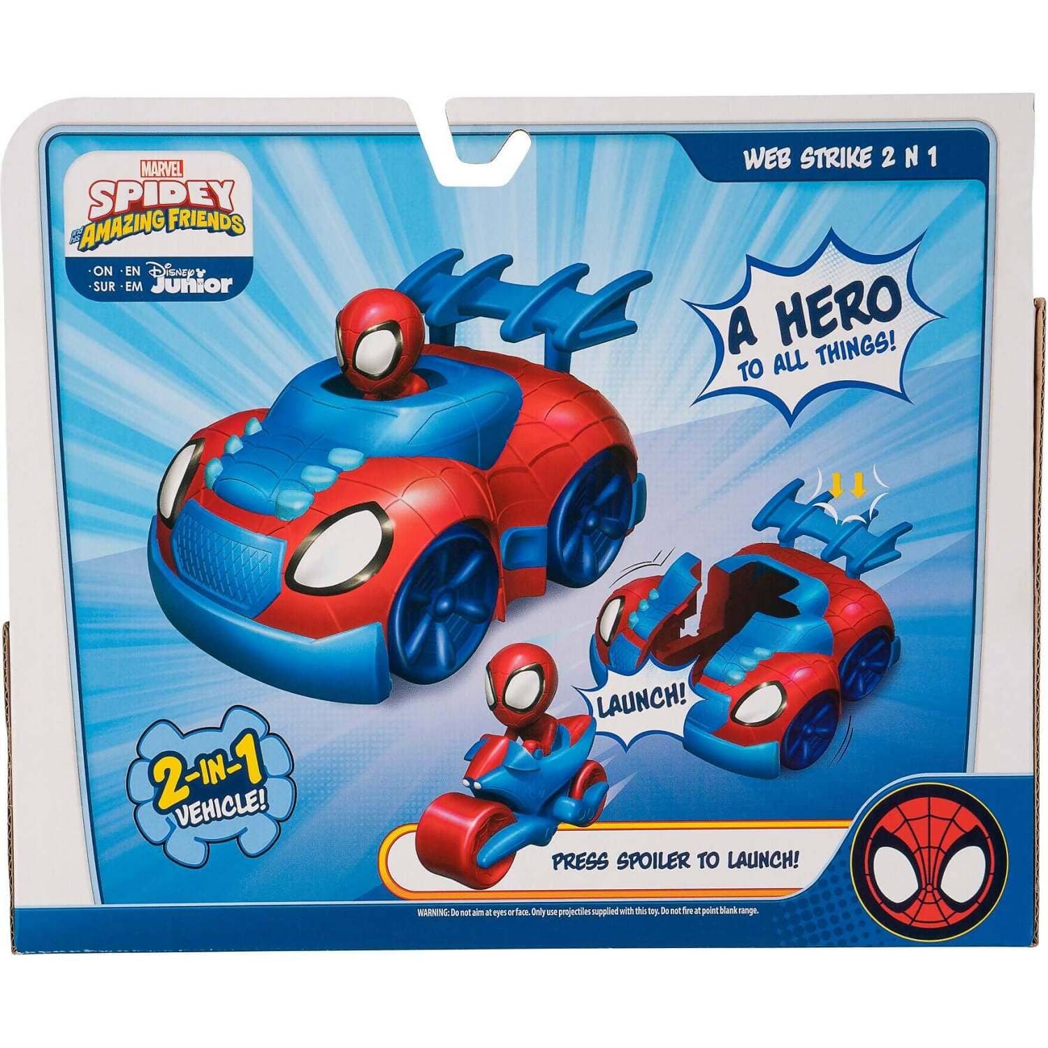 Reload Spidey into the Web vehicle after his launch and play again! Spidey’s Web Strike 2 n 1 vehicle is a must-have toy for all Spidey fans!