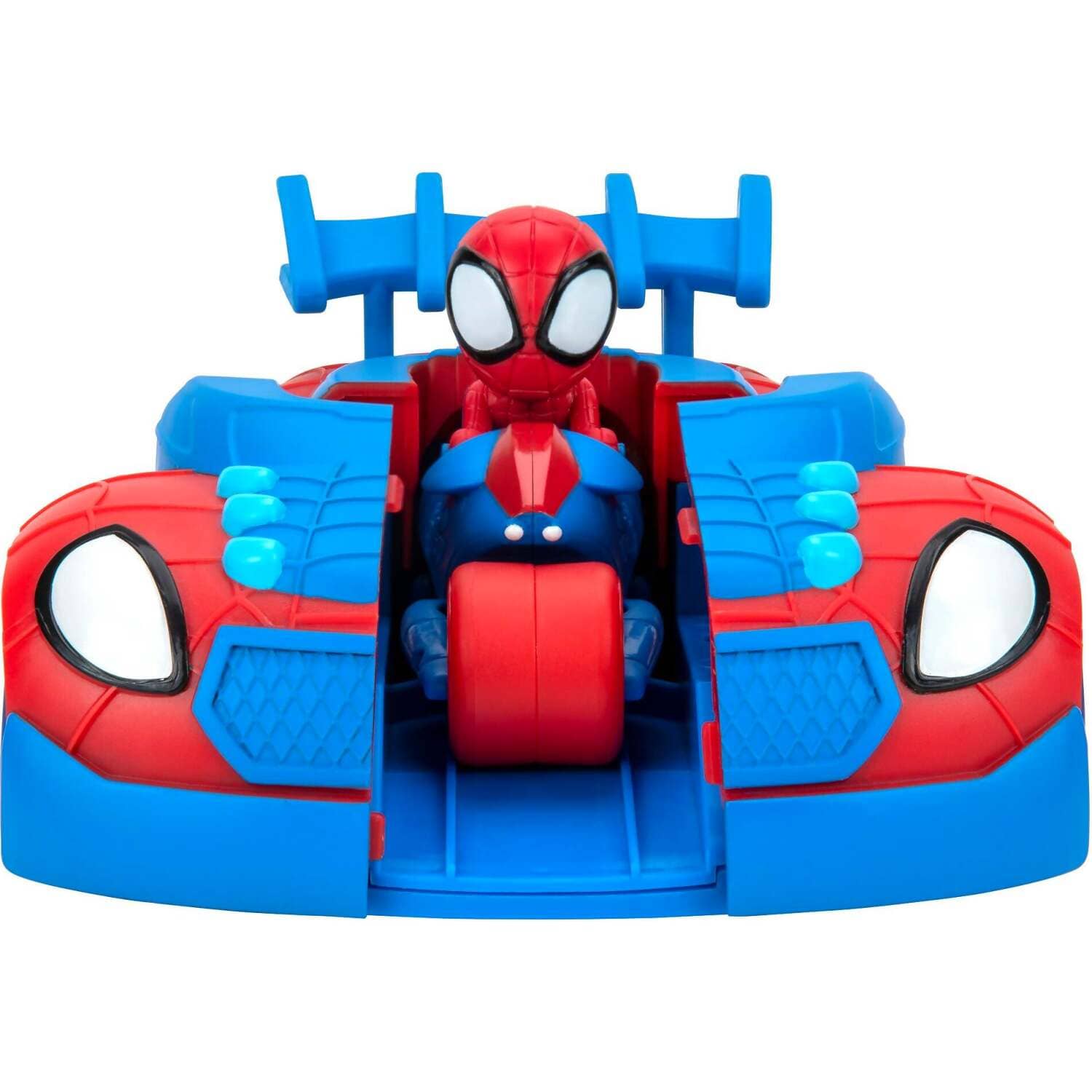This free-wheeling vehicle has two modes of play, Web Strike Vehicle and Web Strike Cycle. Watch the Spidey Cycle fly out of the car by pressing down on the spoiler for even more action and adventure.