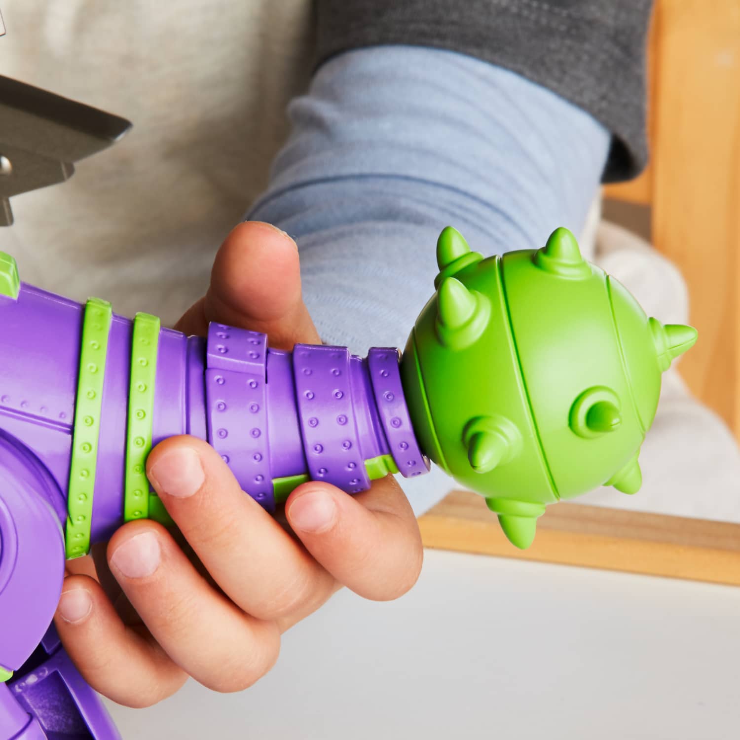 MECH SUIT WITH BLAST FEATURE: Kids can load one of the included projectiles into Goblinsaurus tail, and launch with the push of a button