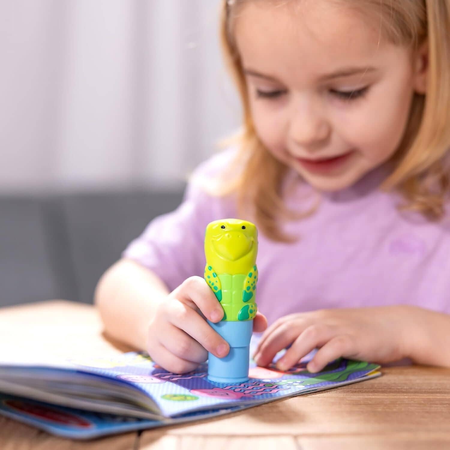 - Collectible Character: Features Kelp the Sea Turtle sticker stamper