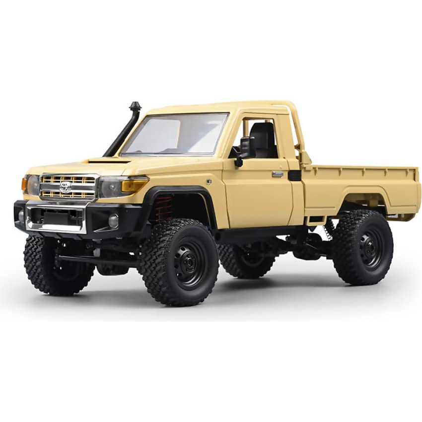 The MN Model Scale 1/12 Toyota LC79 4WD Crawler RTR (Yellow) RC Car MN82 is a highly detailed remote-controlled replica of the iconic Toyota Land Cruiser LC79. Designed for off-road enthusiasts and collectors alike, this model combines rugged performance with authentic styling. Its 4-wheel drive system and proportional throttle steering deliver smooth handling across a variety of terrains.