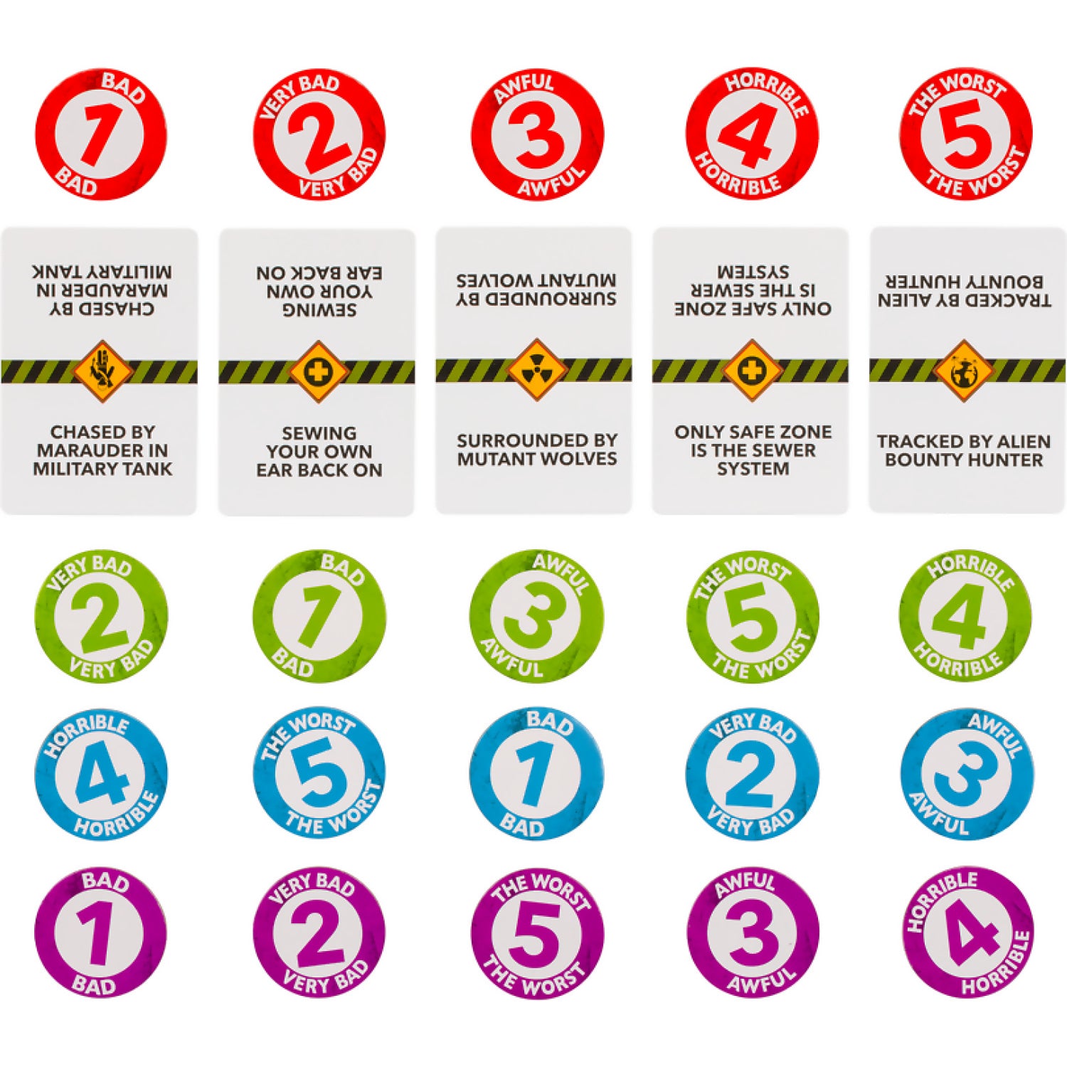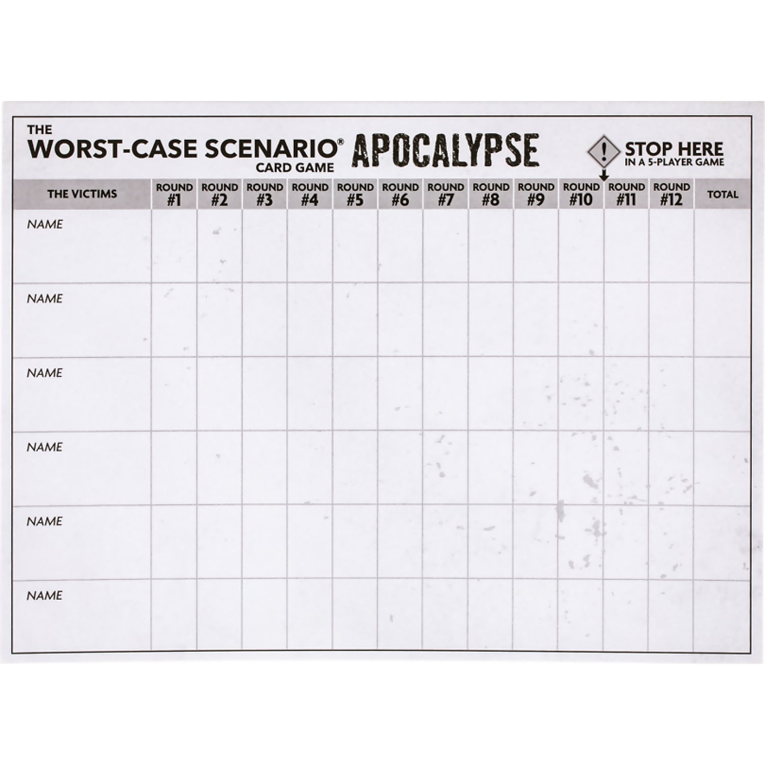 There are a thousand ways the world could end and the Worst-Case Scenario Card Game APOCALYPSE is jam-packed with 225 of the grittiest apocalyptic scenarios for players to rank. How do you compare being captured by raiders to touching a zombie's butt-cheek, discovering your pet is a flesh-eating alien, or seeing grandma flattened by an asteroid