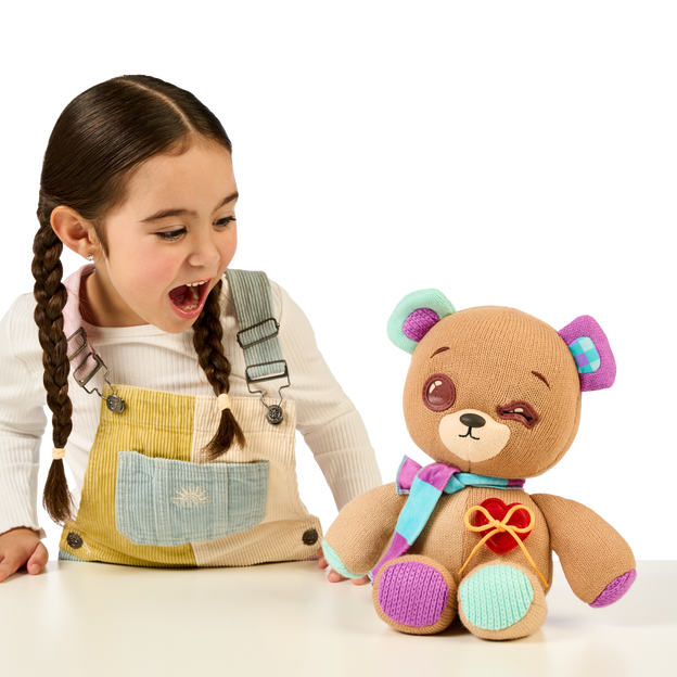 Thready Bear is an interactive plush toy that comes to life with a magical button heart. Children can make a wish and watch Thready Bear’s heart glow, bringing the bear to life. This adorable bear features expressive button eyes that show various emotions, making it a delightful companion for kids.