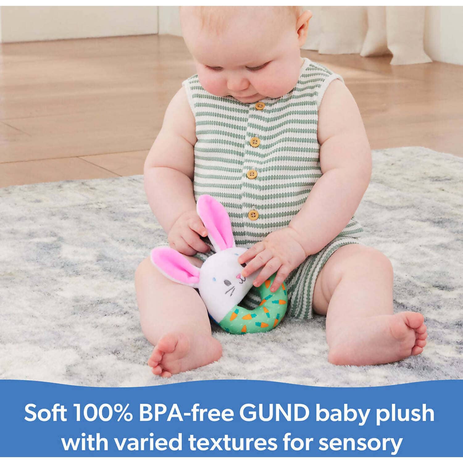 Light-weight and small, this easy-to-grasp, baby-safe, GUND Baby rattle promotes active, on-the-go learning, and is an awesome addition to any outdoor activity toy, toddler travel toys, car seat toys, stroller toys, Miss Rachel doll or crib accessories toys.