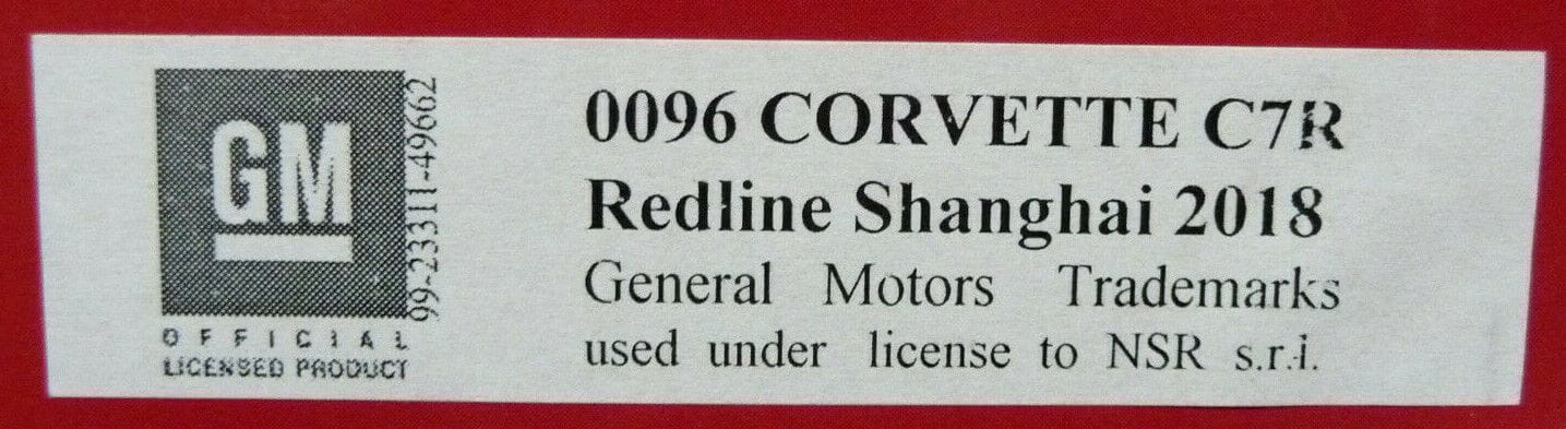 NSR 1:32 0096AW Corvette C7R Redline Shanghai 2018 No.64 suit scalextric/carrera