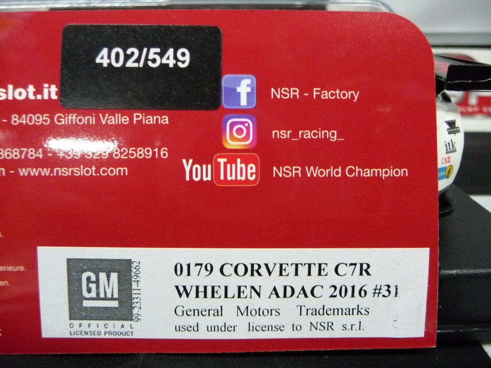 NSR 1:32 0179AW Corvette C7R Whelen ADAC 2016 No.31 slot car also suits scalextric/carrera
