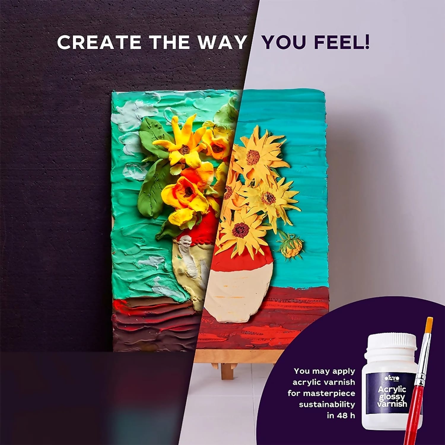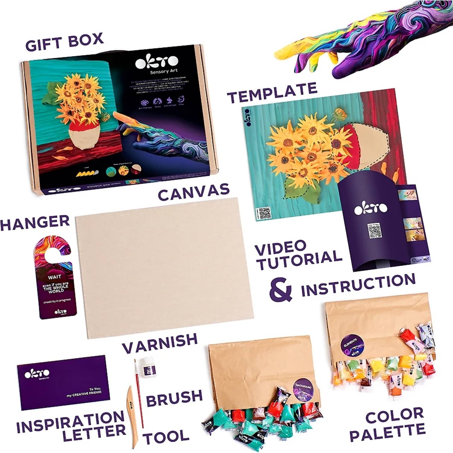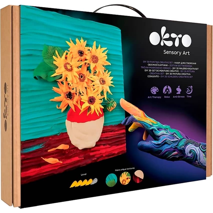 Celebrate the vibrancy of nature with the OKTO Sensory Art - DIY 3D Painting Creative Set Sunflowers. Inspired by Van Gogh’s iconic floral motif, this set invites users to sculpt radiant yellow petals and a tranquil turquoise background using soft, mess-free clay. The process is both meditative and expressive, offering a tactile escape into artistic creation.