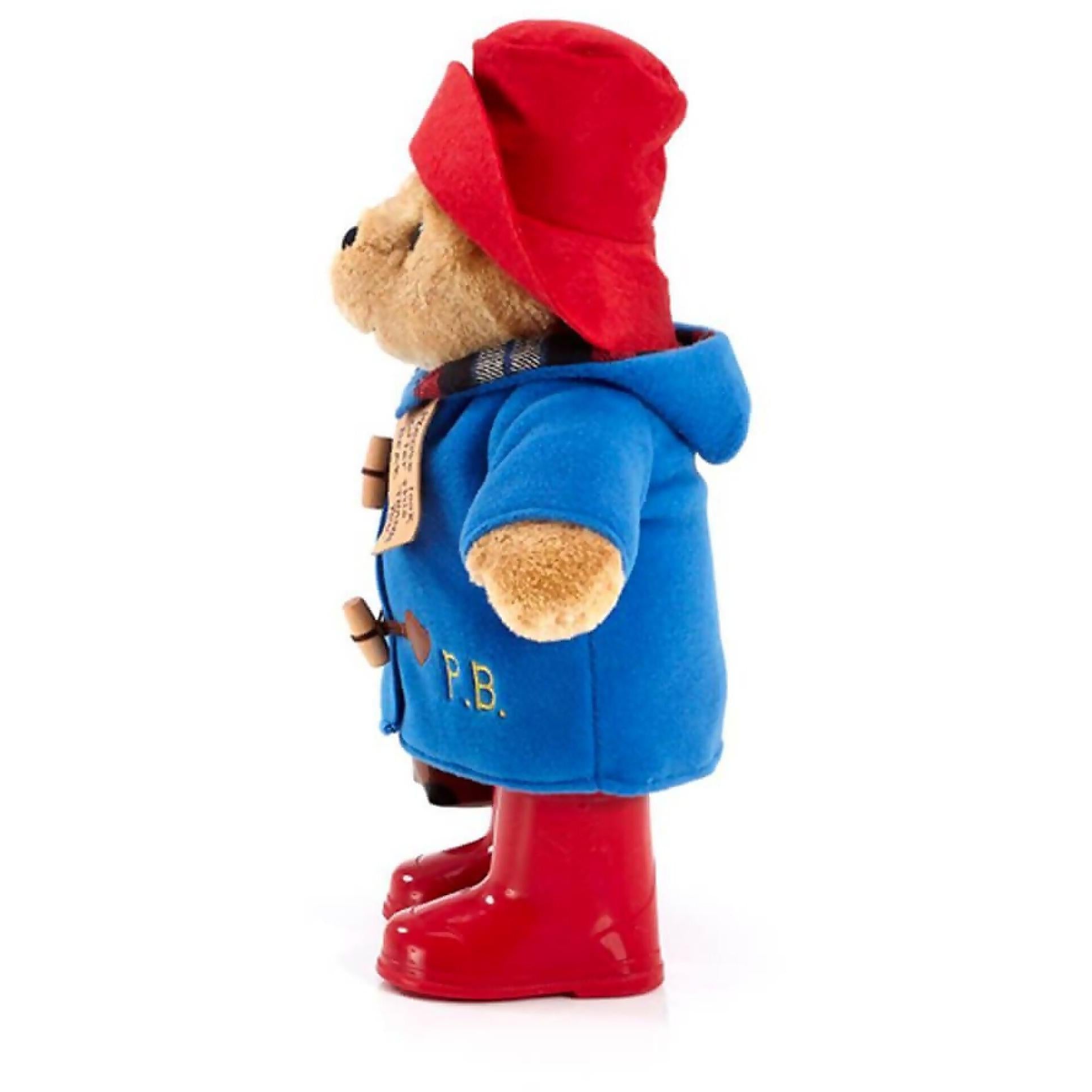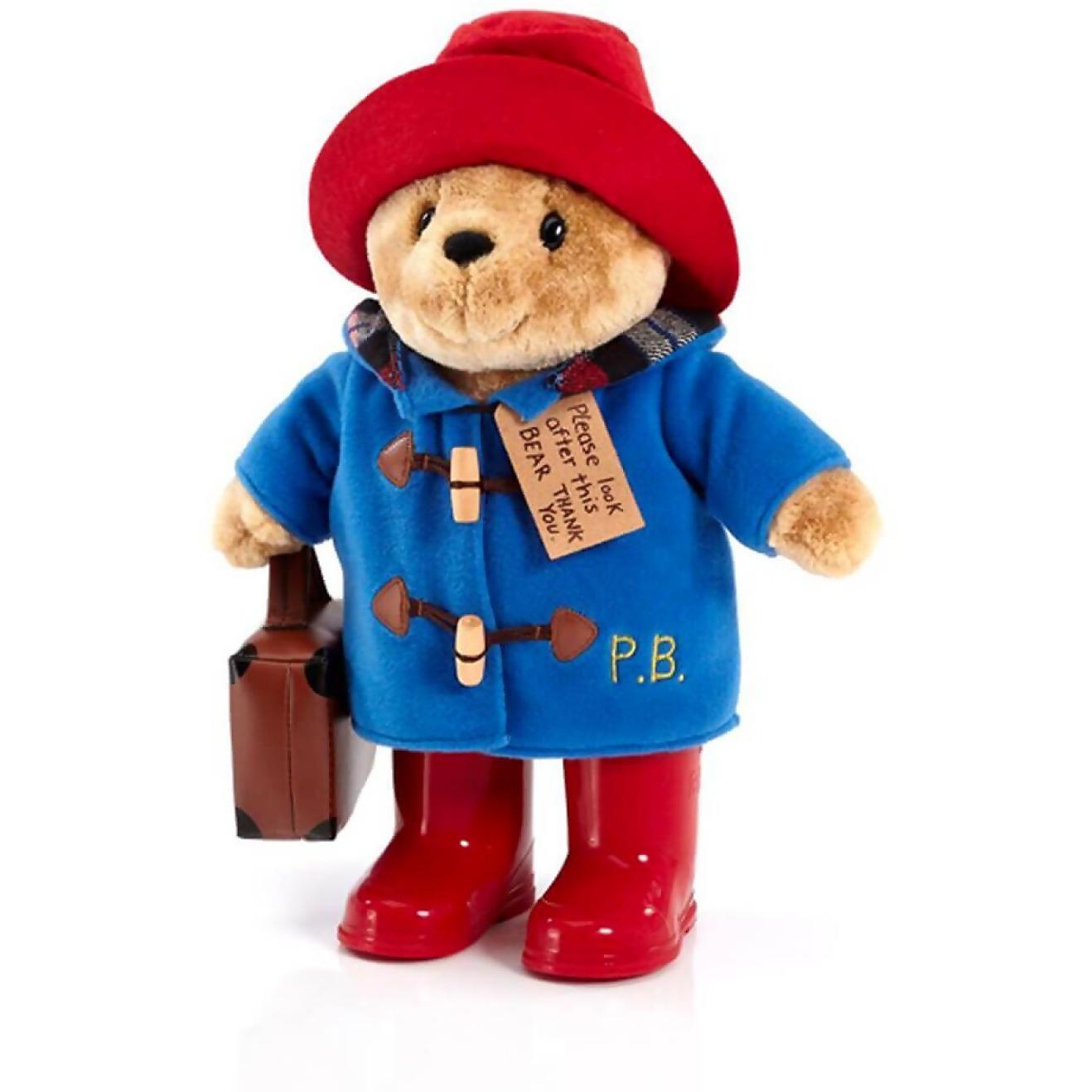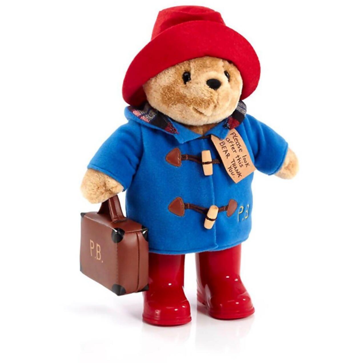 Who can resist taking home their very own Paddington Bear? A great British icon, this wonderful large Paddington Bear Classic with boots and suitcase is the perfect gift for any fan of the endearingly clumsy bear In this 34cm plush version, Paddington is wearing his trademark blue duffle coat with real wooden toggles and the initials PB in delicate gold thread, along with his red hat and wellington boots with paw prints and the initials PB moulded into the soles To finish off his iconic look, Paddington is carrying a brown suitcase again marked with his initials, and has a luggage tag around his neck reading 'Please look after this bear, THANK YOU'