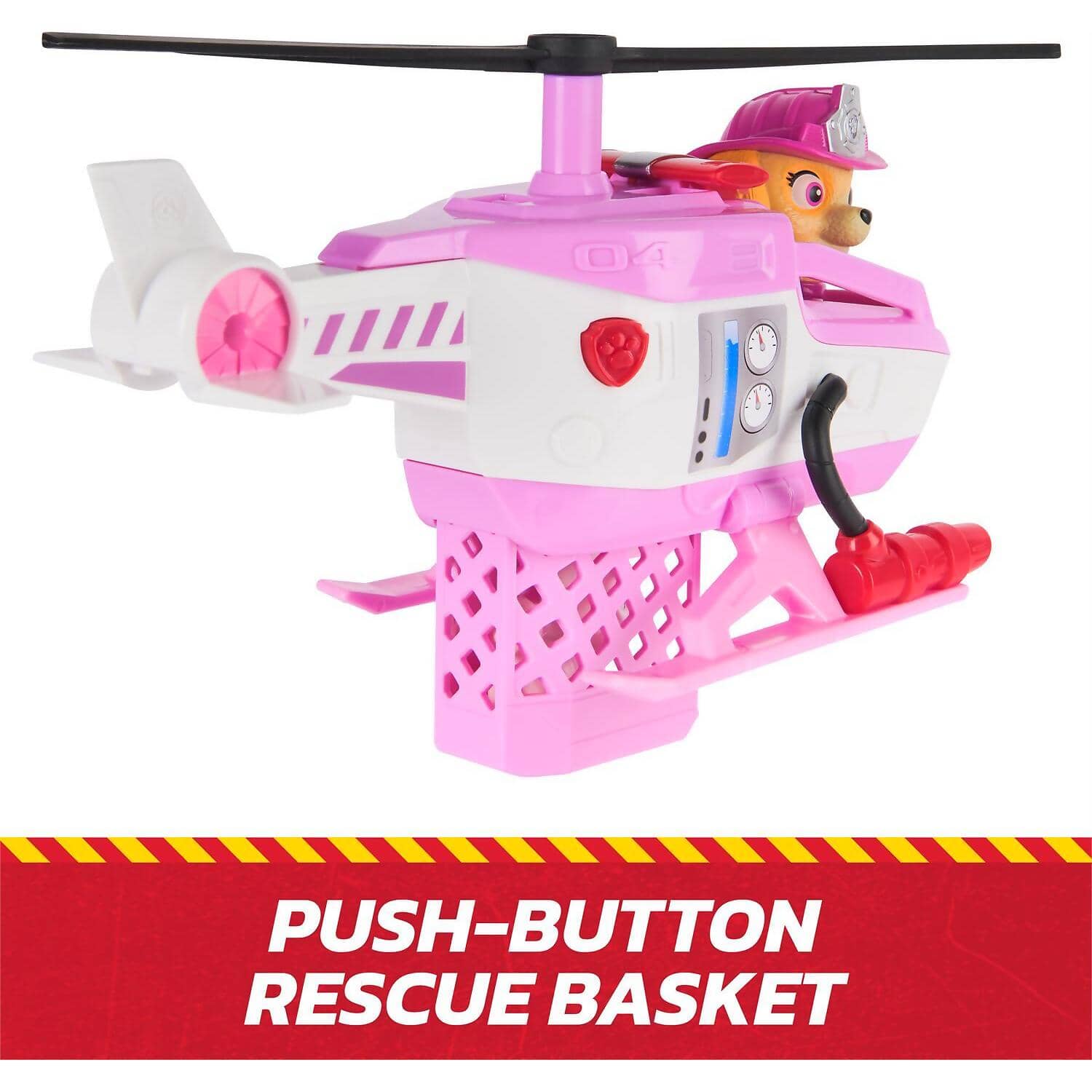 The chopper features a built-in rescue basket and a rotatable propeller, adding excitement to every rescue operation. With a push of a button, activate the rescue basket and save the day alongside Skye's kitty friend. Genuine PAW Patrol styling ensures it looks just like it does in the show. These PAW Patrol learning toys are PAWsome for a birthday, Christmas, or any holiday.