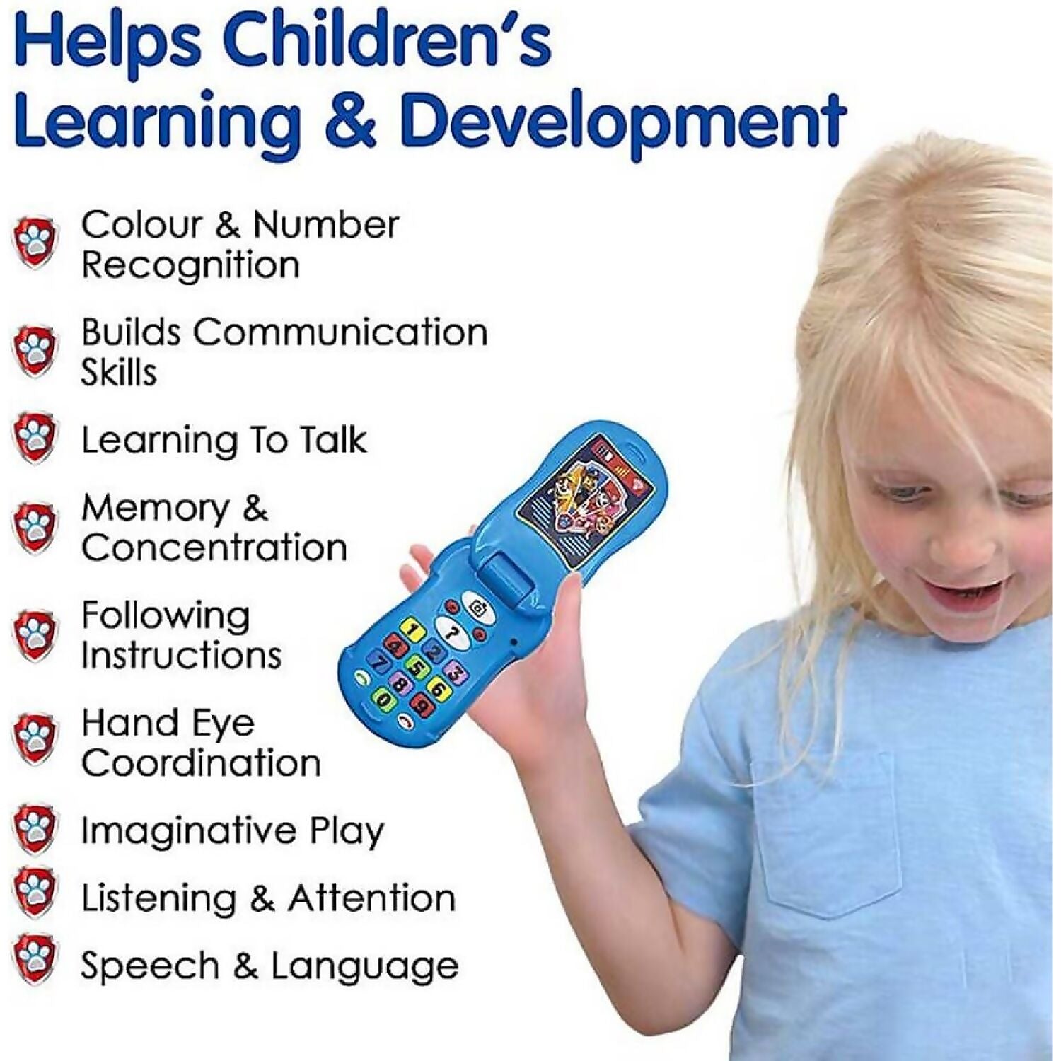 Call Ryder and the Pups! Have fun learning about colours, numbers and fun phrases from the pups with this interactive flip up phone.