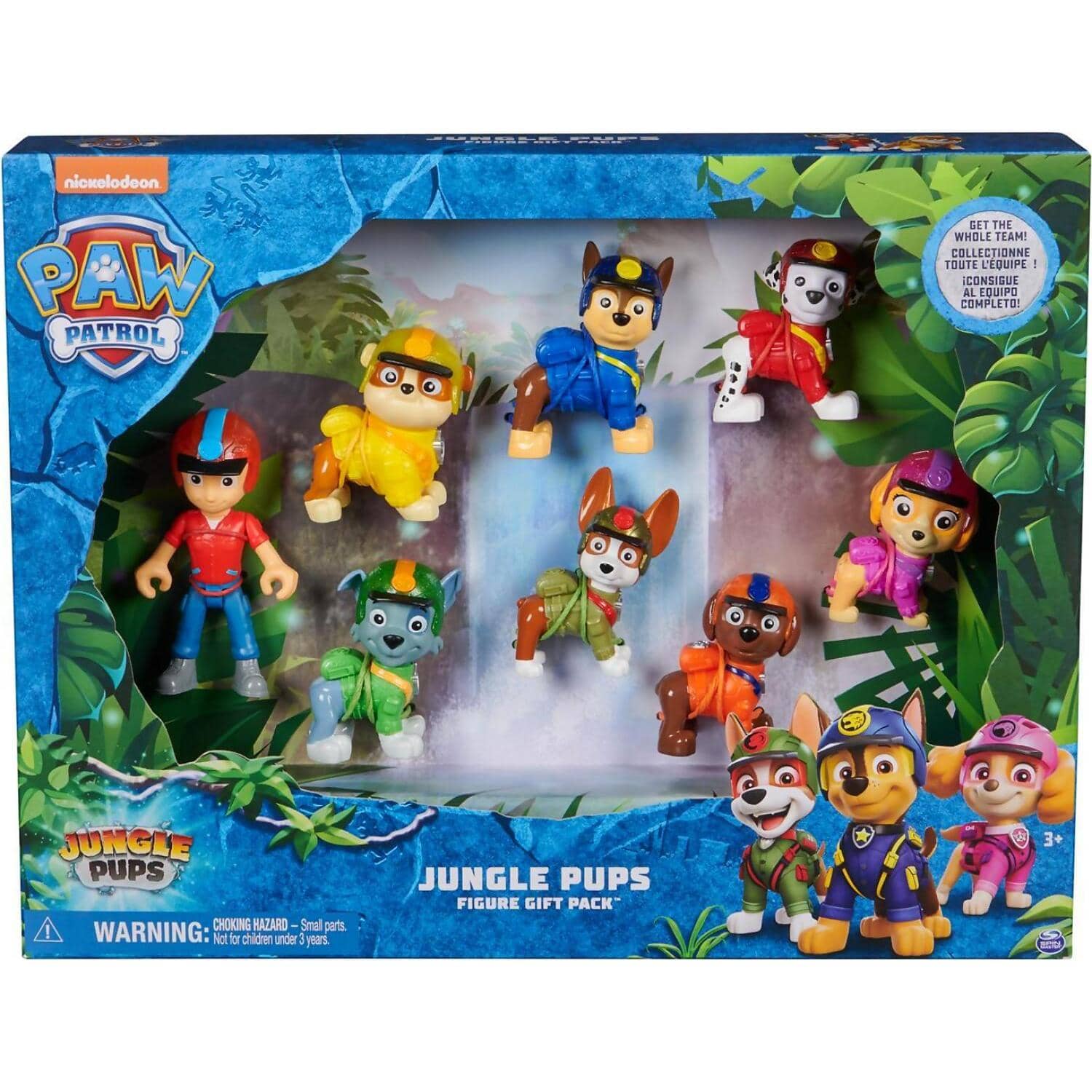 Create your own PAW Patrol: Jungle Pups adventures with the PAW Patrol Collectible Figure Gift Pack! This PAW Patrol toy figures set includes Ryder and his PAWsome pups, Chase, Marshall, Rocky, Rubble, Zuma, Tracker and Skye action figures that you won`t find anywhere else!