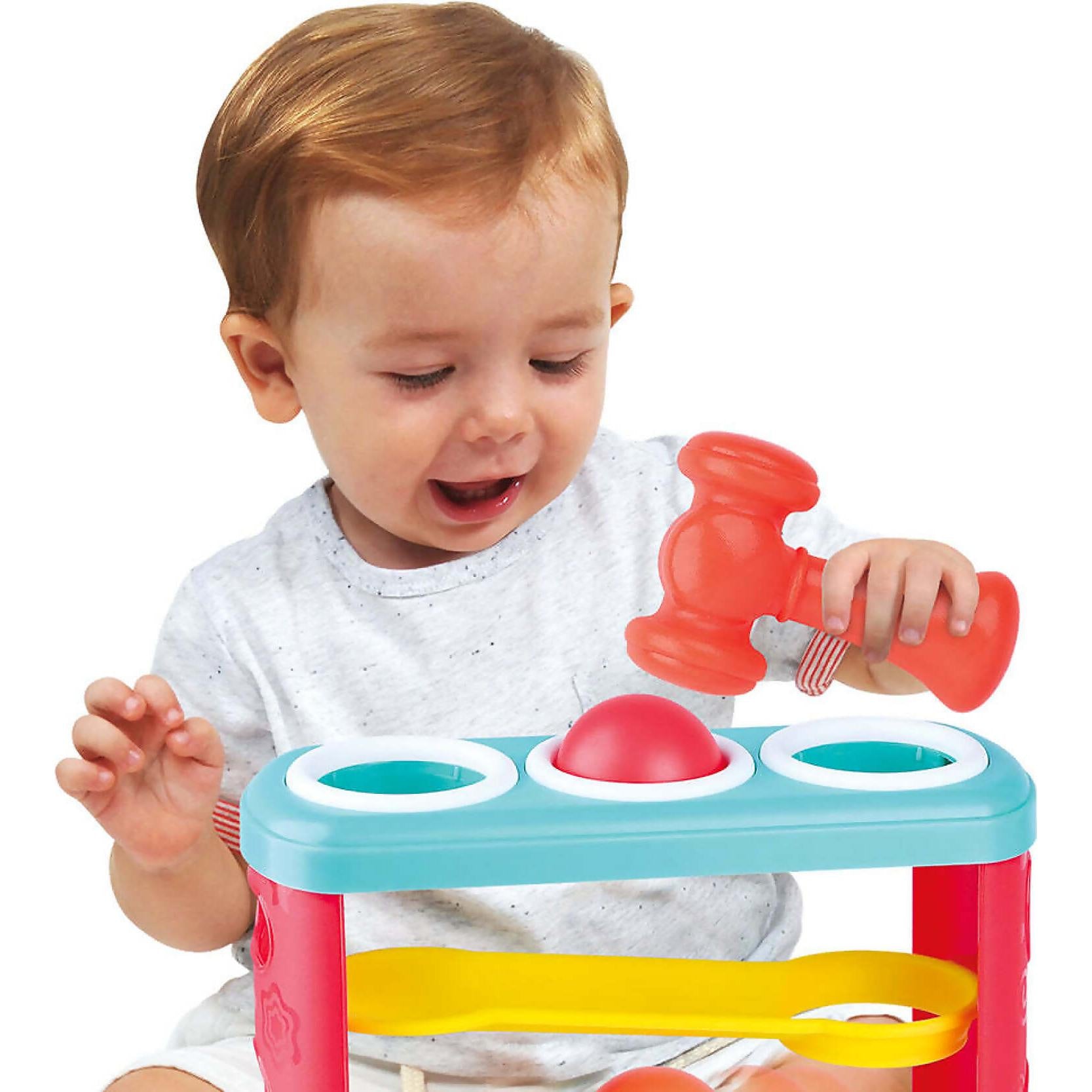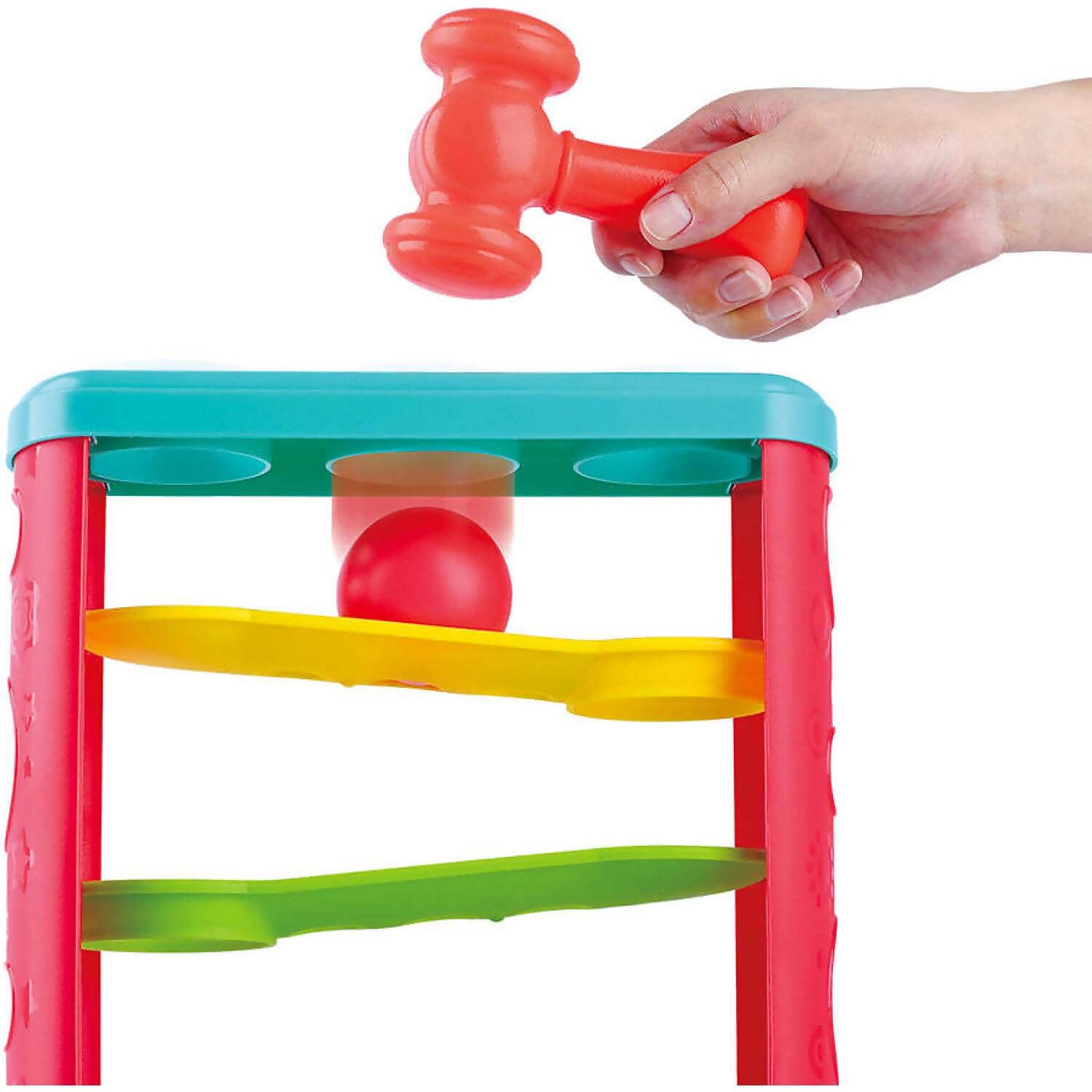 The toy comes with a hammer that is easy to grab, adding an interactive component that keeps kids engaged and entertained. The concept is simple yet captivating - children can pound the balls down the tower and watch them zoom down the ramp with glee. This interactive feature makes the Hammer and Roll Tower a hit among kids.