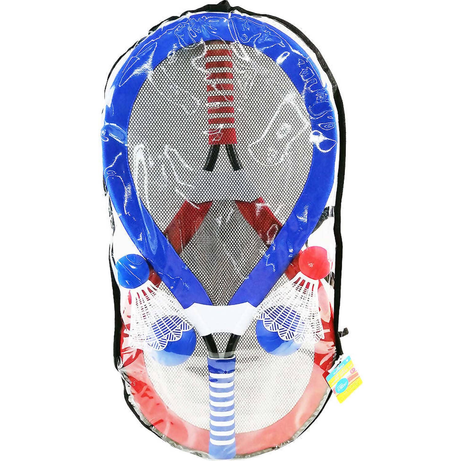 The jumbo tennis set includes 2 rackets, 2 balls, and 2 shuttlecocks, providing a comprehensive sporting experience.