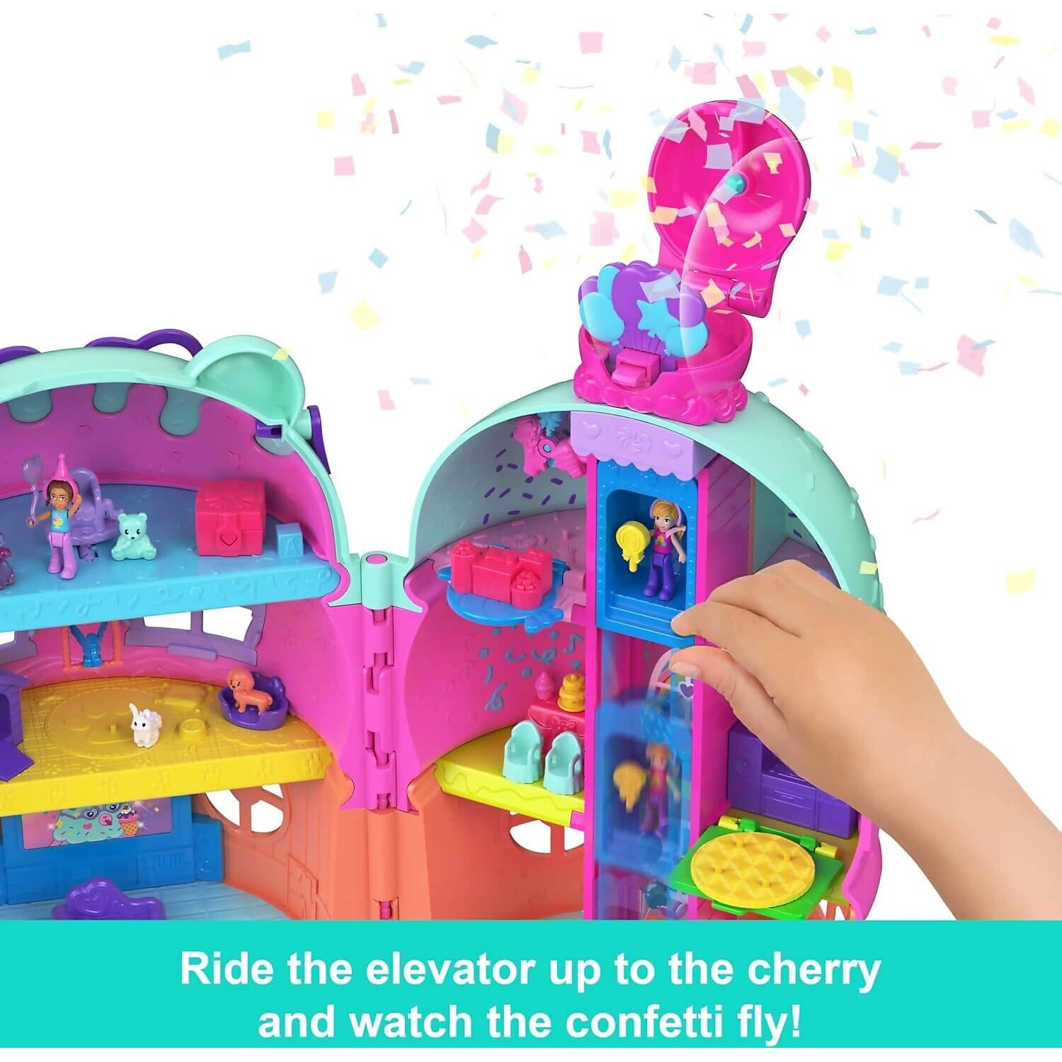 Come on in and join the celebration! The Polly Pocket Gelato House is shaped like an ice cream cone with an adorable bear theme.