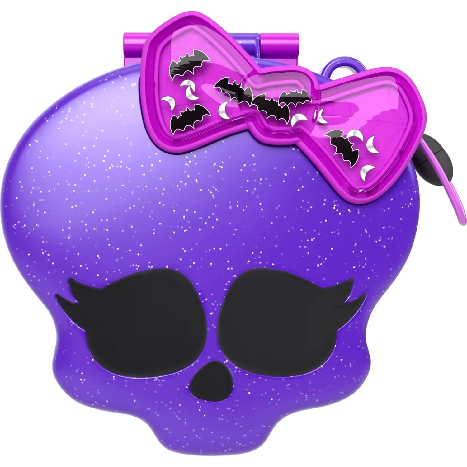Fans favorite ghouls go tiny in this Monster High x Polly Pocket collaboration compact! The iconic skullete exterior features a shaker bow filled with glitter bats and opens to reveal a spooktacular skatepark and high school.