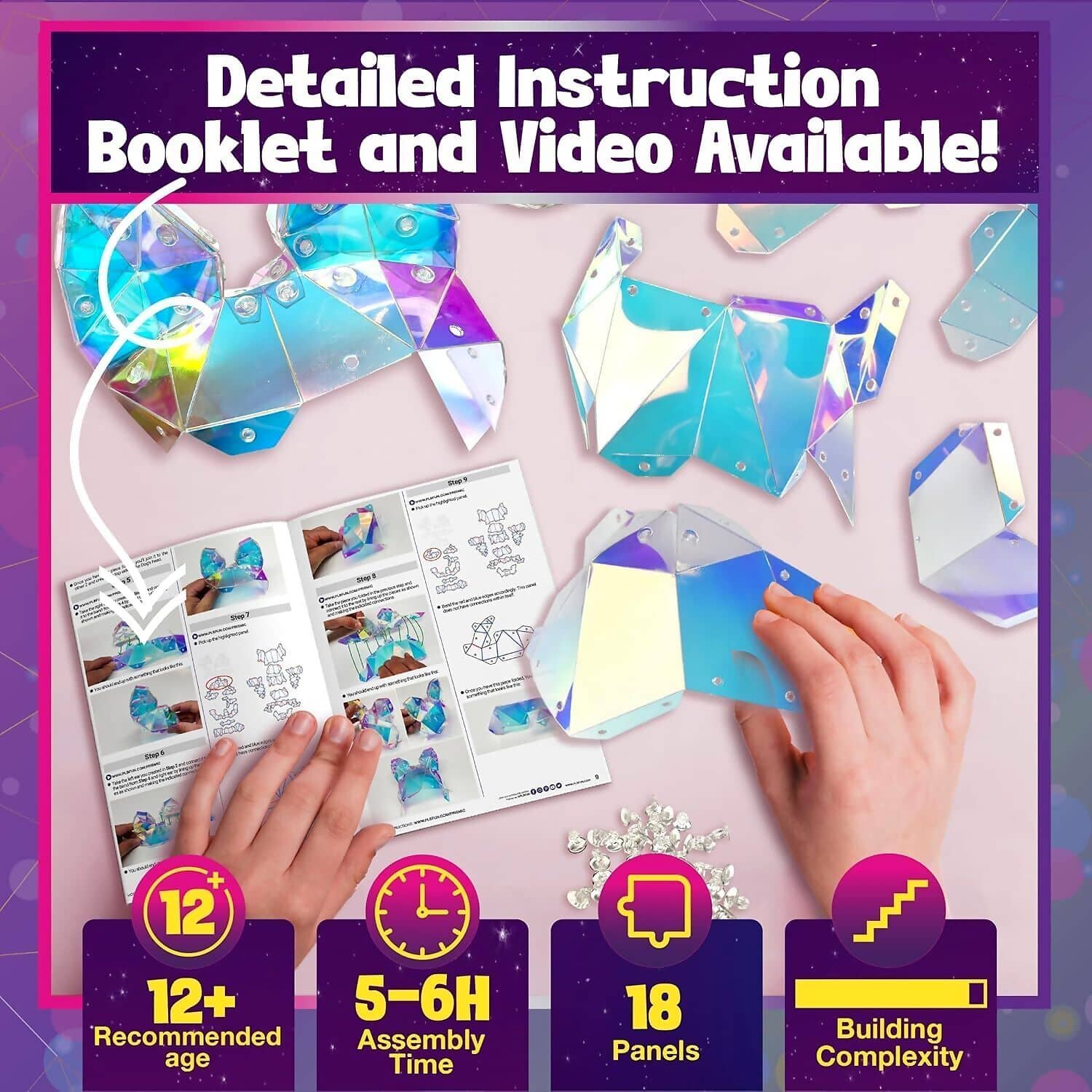The Purple Ladybug - Prismic Dog Lantern 3D Shape Puzzle Kit is an engaging and creative DIY project that transforms into a stunning 3D lantern. This kit includes USB-powered LED lights that emit a beautiful shimmery glow, making it a delightful craft for teens and tweens.