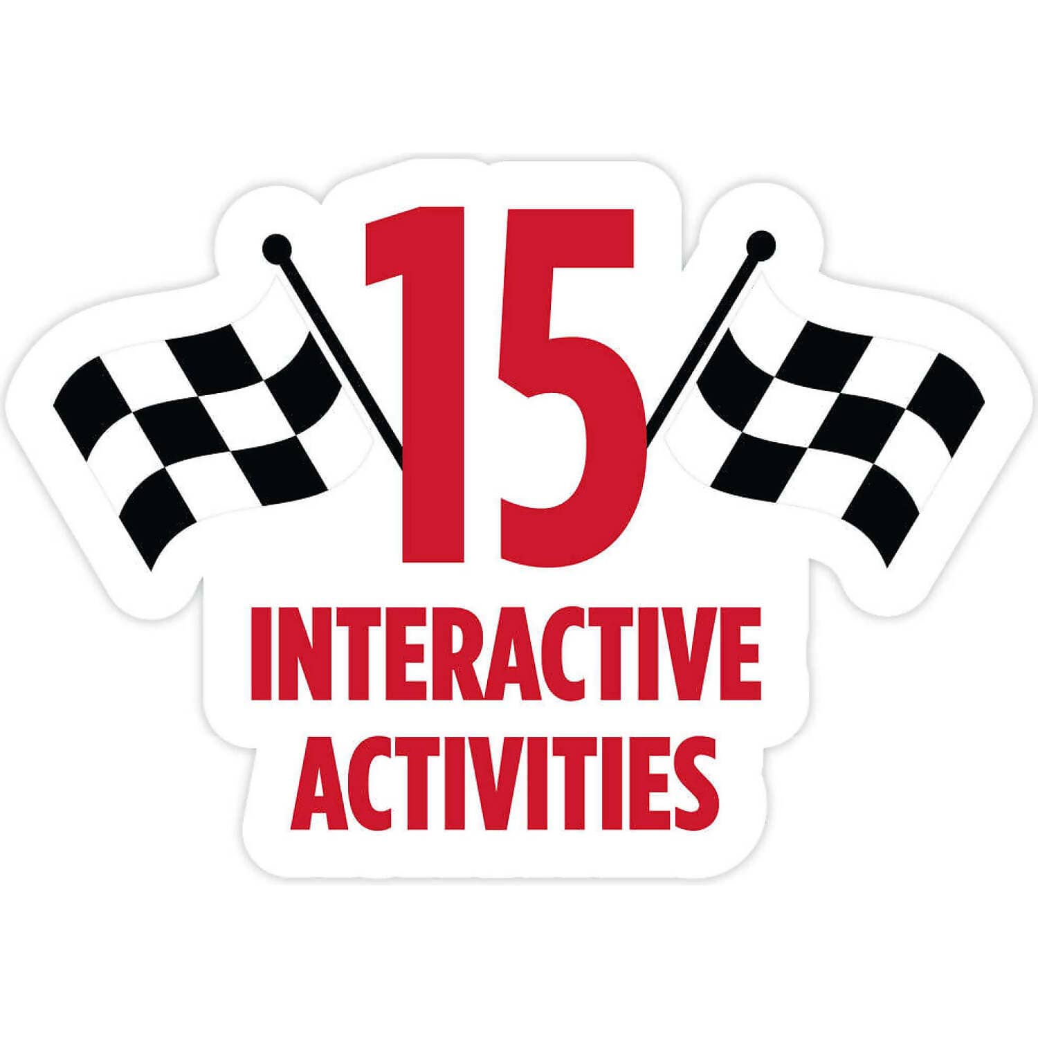It features 15 interactive touch points that encourage problem solving and imaginative play.