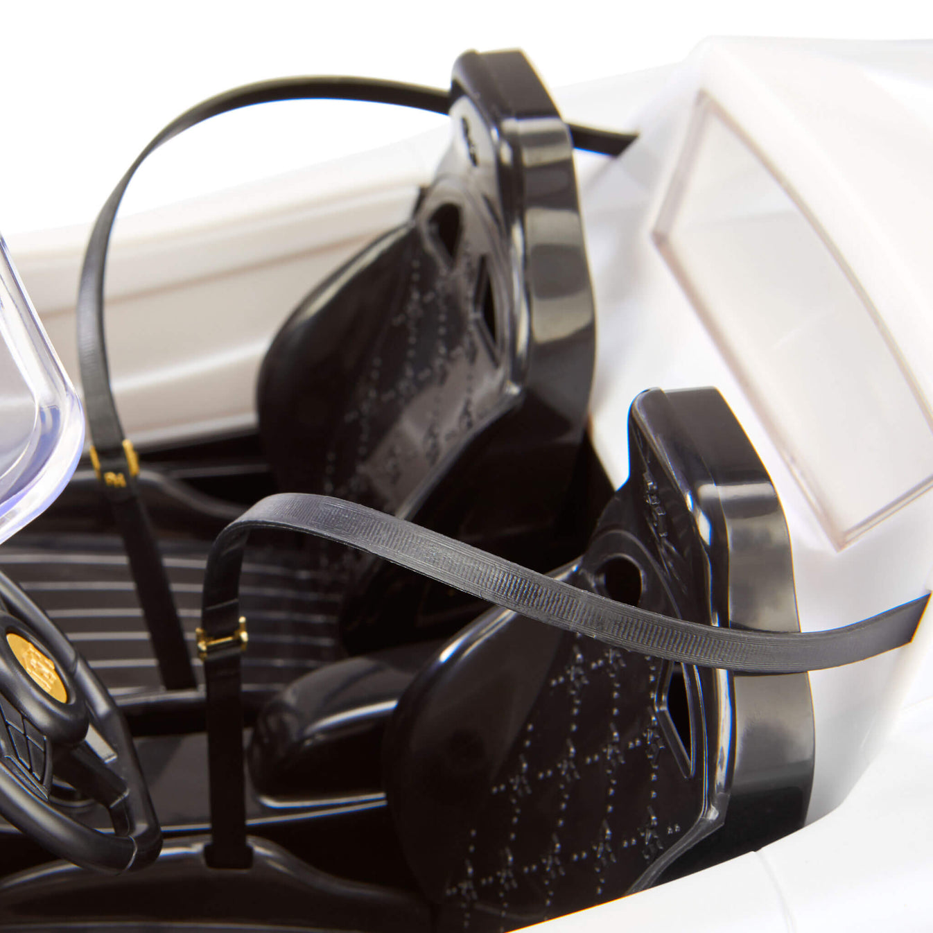 To make it super easy to get your dolls in and out of the car, you can shift the steering wheel up and down, pull the seatbelt out from the waist position, and you can even remove the windshield if you’d like for easy access.