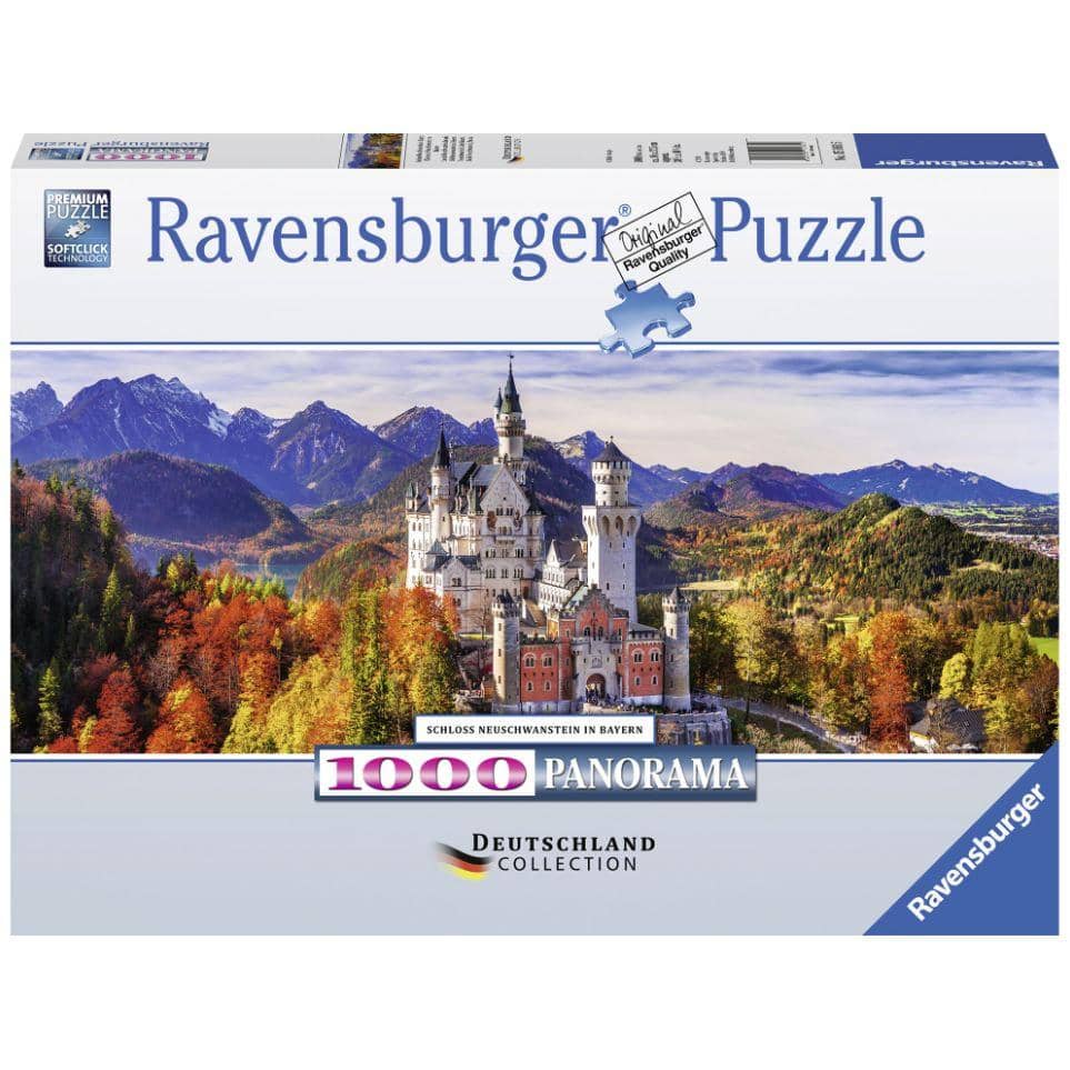 - The “Neuschwanstein Castle” panorama puzzle from Ravensburger provides a spectacular fairytale setting.