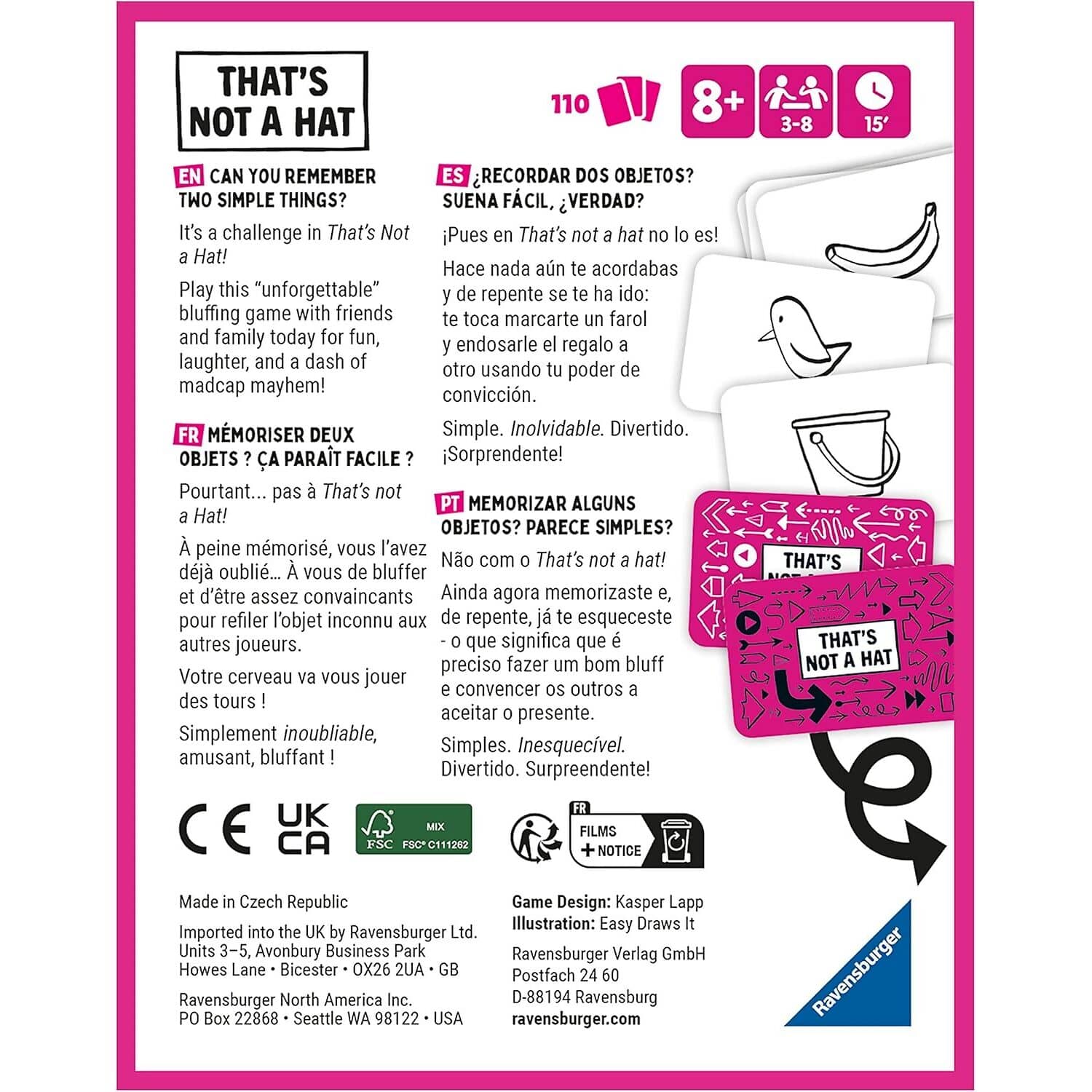 Ravensburger - That's Not A Hat Card Game is a fun and engaging game that tests your memory and bluffing skills. Perfect for family game nights and gatherings.