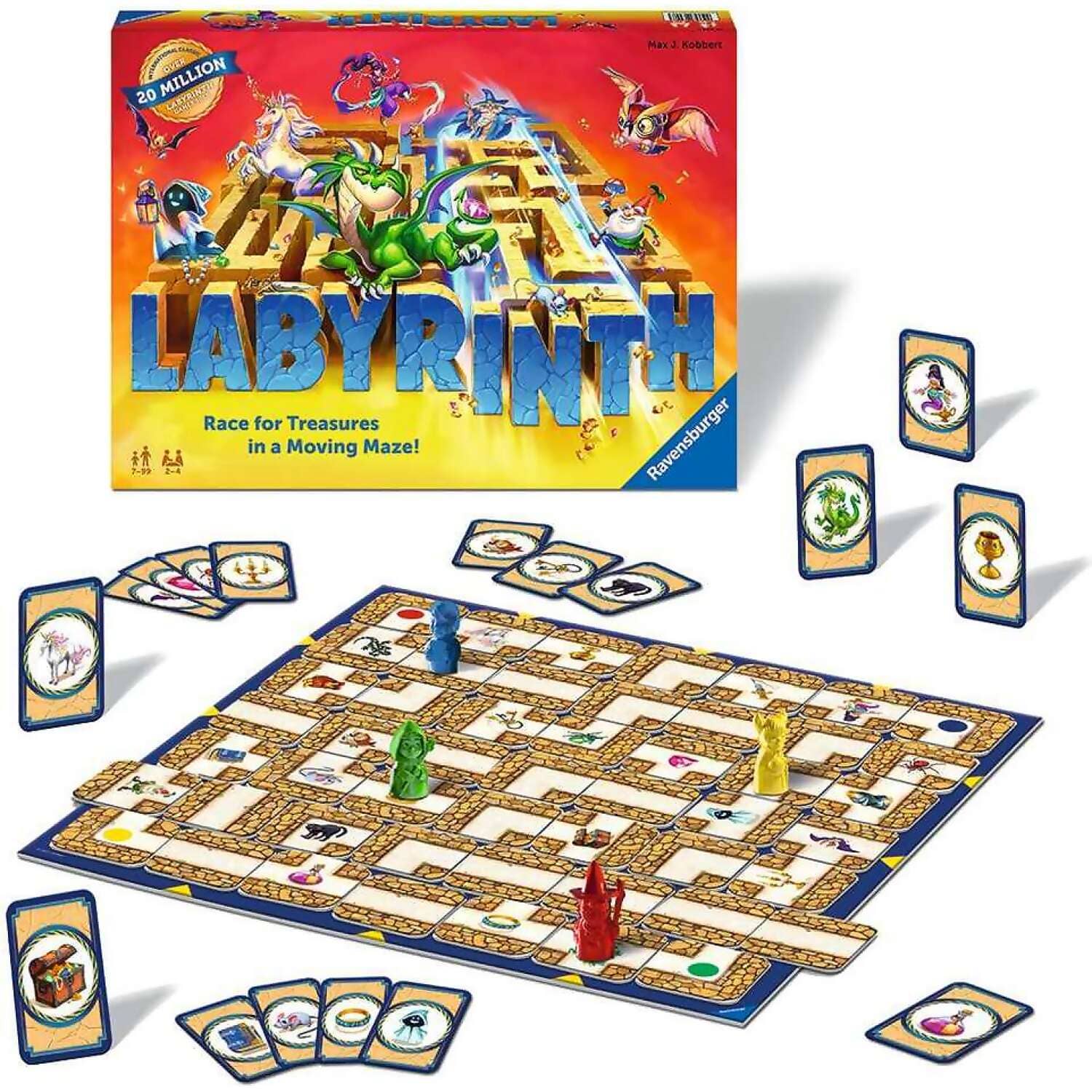 Be the first to collect all your treasures by shifting the walls of the labyrinth to create a clear path. Players take turns to search the Labyrinth for their magical objects and characters by carefully moving through the constantly changing maze. It is up to you to strategically move the walls so you can collect your treasures, but block the path for the other players. This game is full of magical and addictive family fun.