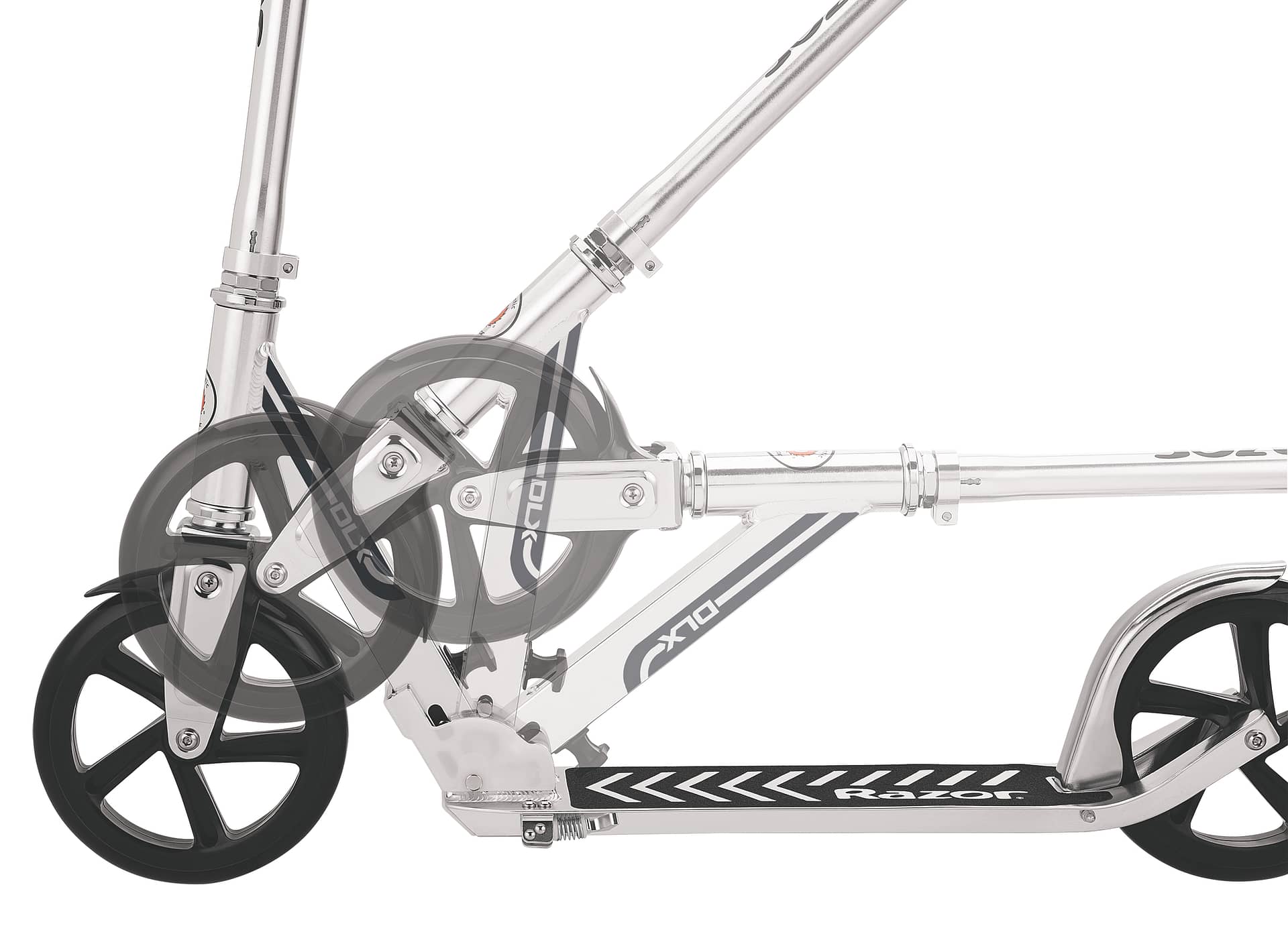 Patent-pending, anti-rattle, easy-folding mechanism makes transporting and storing the A5 DLX between rides a breeze.