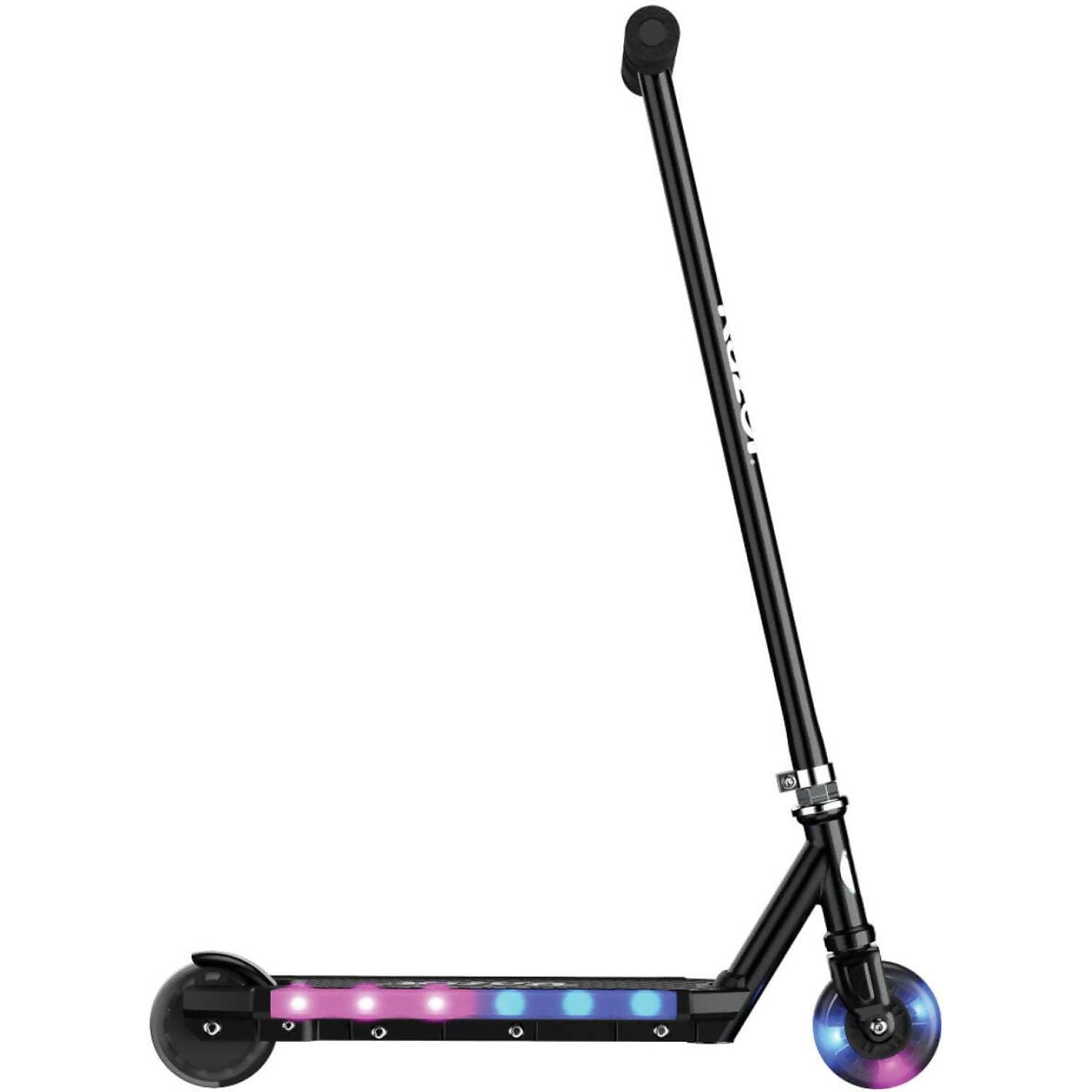 The classic Razor kick scooter is made even beer with the addition of multi-color LED lights that don't require batteries! Kick 2 Glow's front wheel and deck are lit through the power of moon.