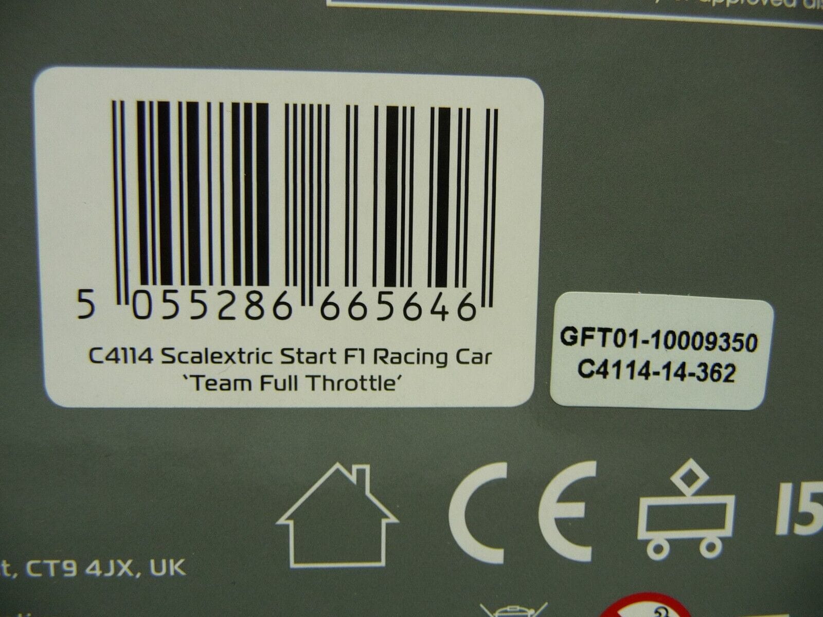 Scalextric C4114 START F1 Racing Car Team Full Throttle slot car also suits Carrera