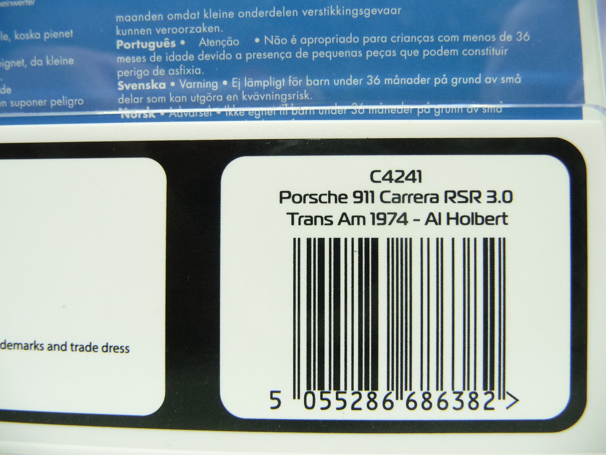 Scalextric C4241 Porsche 911 Carrera RSR Trans Am 1974 Al Holbert slot car also suits Carrera