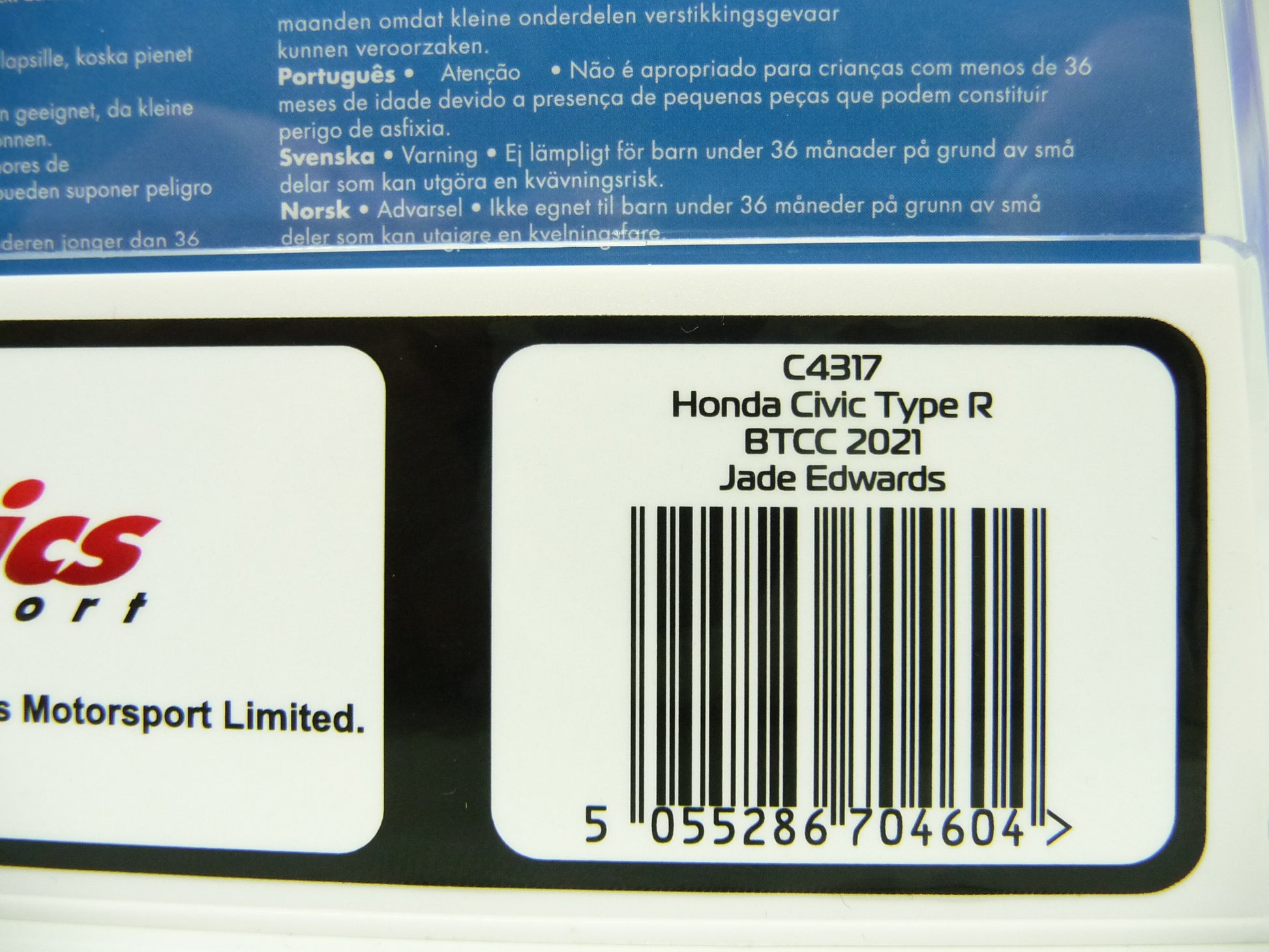 Scalextric C4317 Honda Civic Type R BTCC 2021 Jade Edwards slot car also suits Carrera