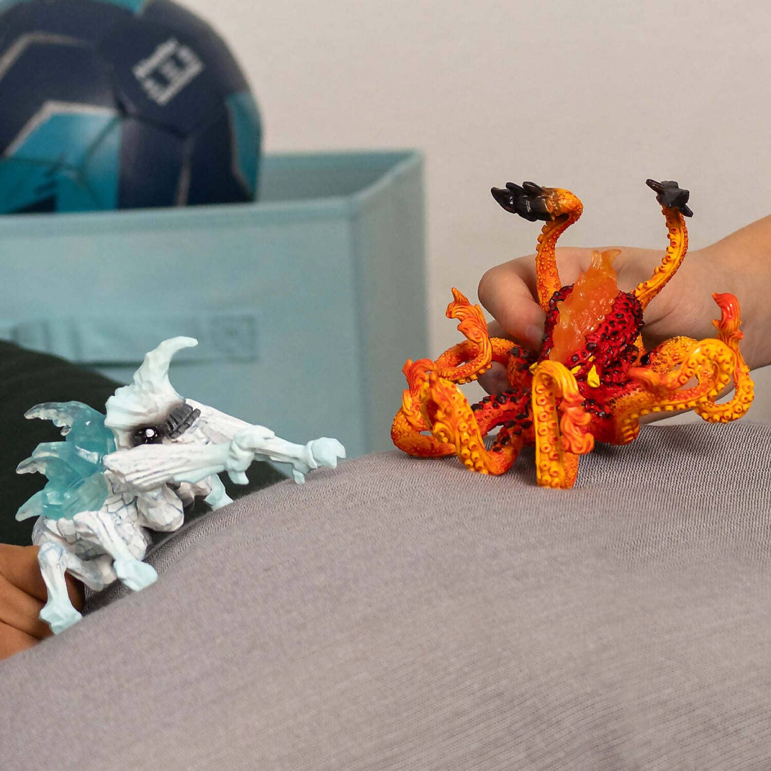 The Ice Bug keeps trying to grab the Fire Kraken with its sharp claws. But it defends itself with its flaming tentacles. The Ice Bug tries to dodge its countless suction arms, because they burn like fire and have dangerous pincers at the ends. This will be some fight!