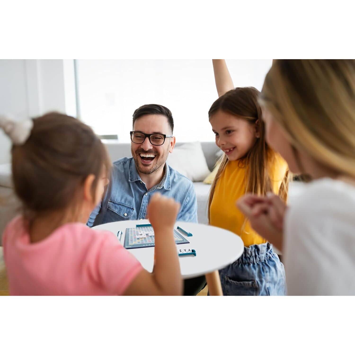 - Includes 100 letter tiles, 4 racks, tile bag, and rule sheet