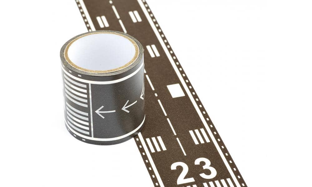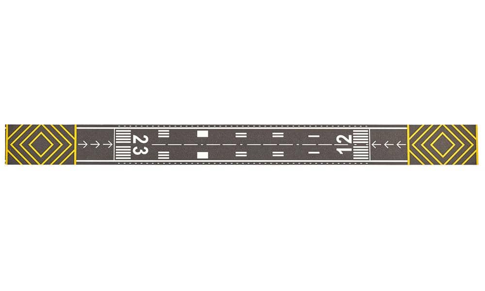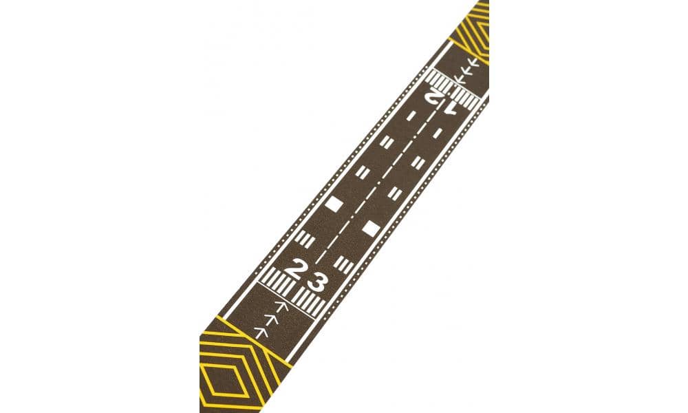 The airport fascinates passengers, whether small or grown-up. A never-ending stream of aircraft landing and taking-off, with tractors and loads coming and going in between. The new siku airport set consists of a four-jet commercial aircraft, a catering vehicle for the onboard meals, a trailer with passenger steps, an airport tractor, and a luggage trailer. The height of the catering-vehicle can be adjusted by means of a scissors mechanism. Together with the front and rear flaps of the luggage trailer, this simplifies loading and unloading. These flaps can also be opened. As well as the luggage trailer, the passenger steps made from metal and plastic can also be attached to the airport tractor. But where do the planes take off and land The set includes a five metre roll of self-adhesive tape, printed with typical markings. This can simply be cut off using scissors