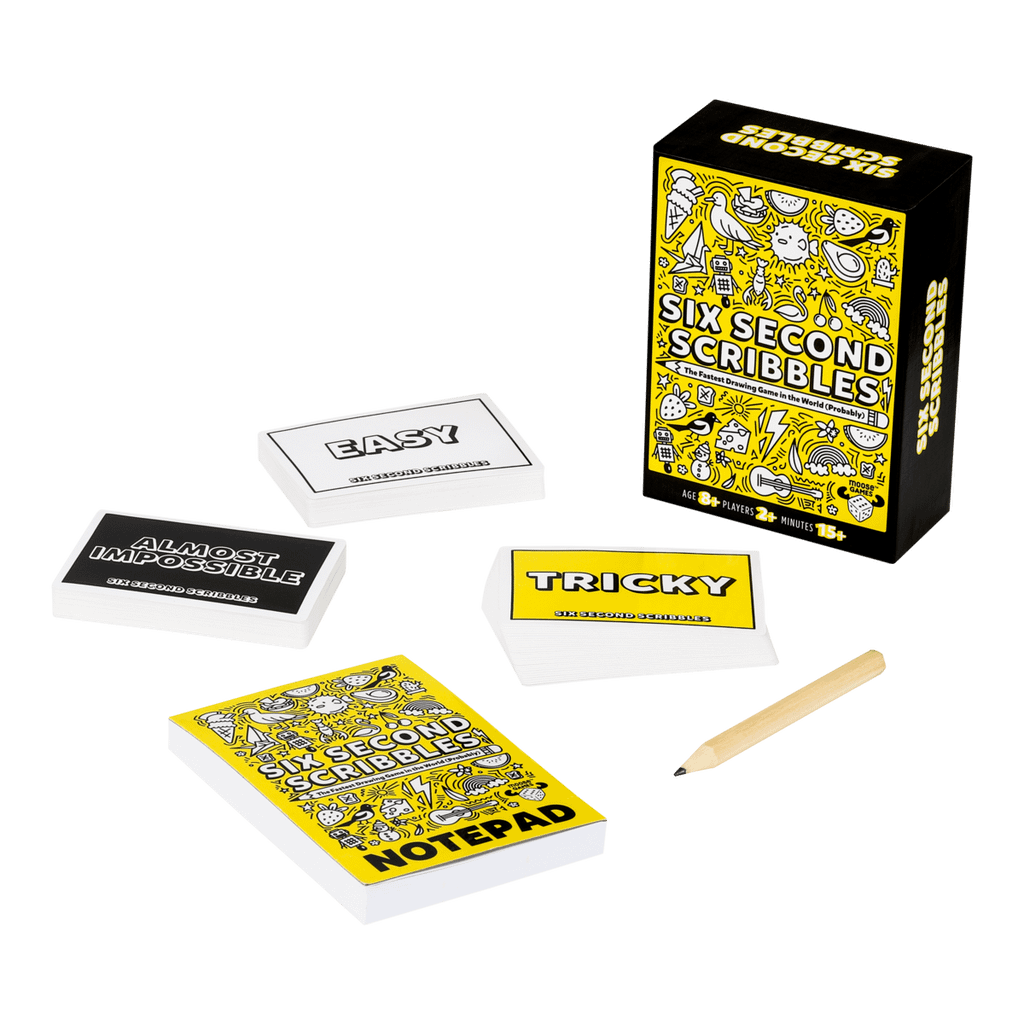 Six Second Scribbles is a game where you 'Draw, Decipher and Score'! Everyone plays at once in this fast-paced party game! You all have ONE minute to draw up to TEN things from your card. But not every doodle will do! To win points, your friends and family must be able to guess WHAT you drew. Whether you fancy yourself as an artist or can’t draw at all, Six Second Scribbles guarantees laughter, frenzy, and some very questionable art!