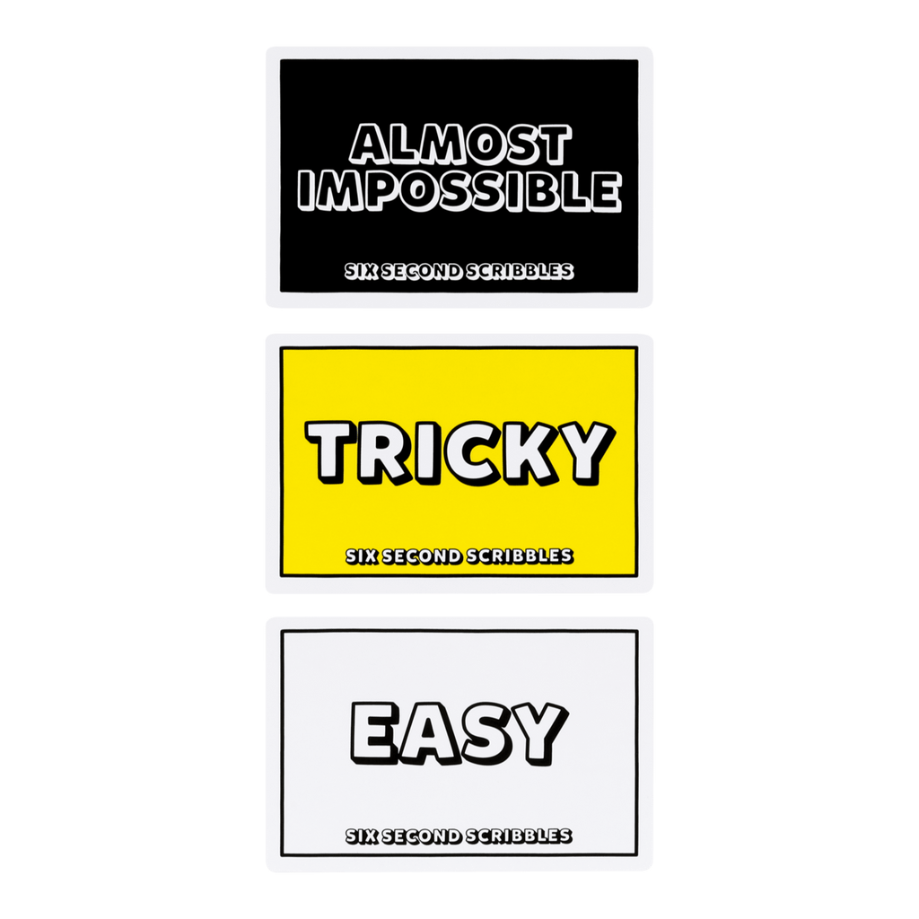This fast and fun game includes lists of over 1000 items to draw across over 100 categories! From 'Easy', 'Tricky' and 'Almost Impossible' drawing suggestions to attempt. A great party game to play with friends and family for 2+ Players from ages 8 and up. Games are super fast paced and quick to play, usually lasting around 15 minutes, making SIX SECOND SCRIBBLES - The Fastest Drawing Game In The World (Probably)!