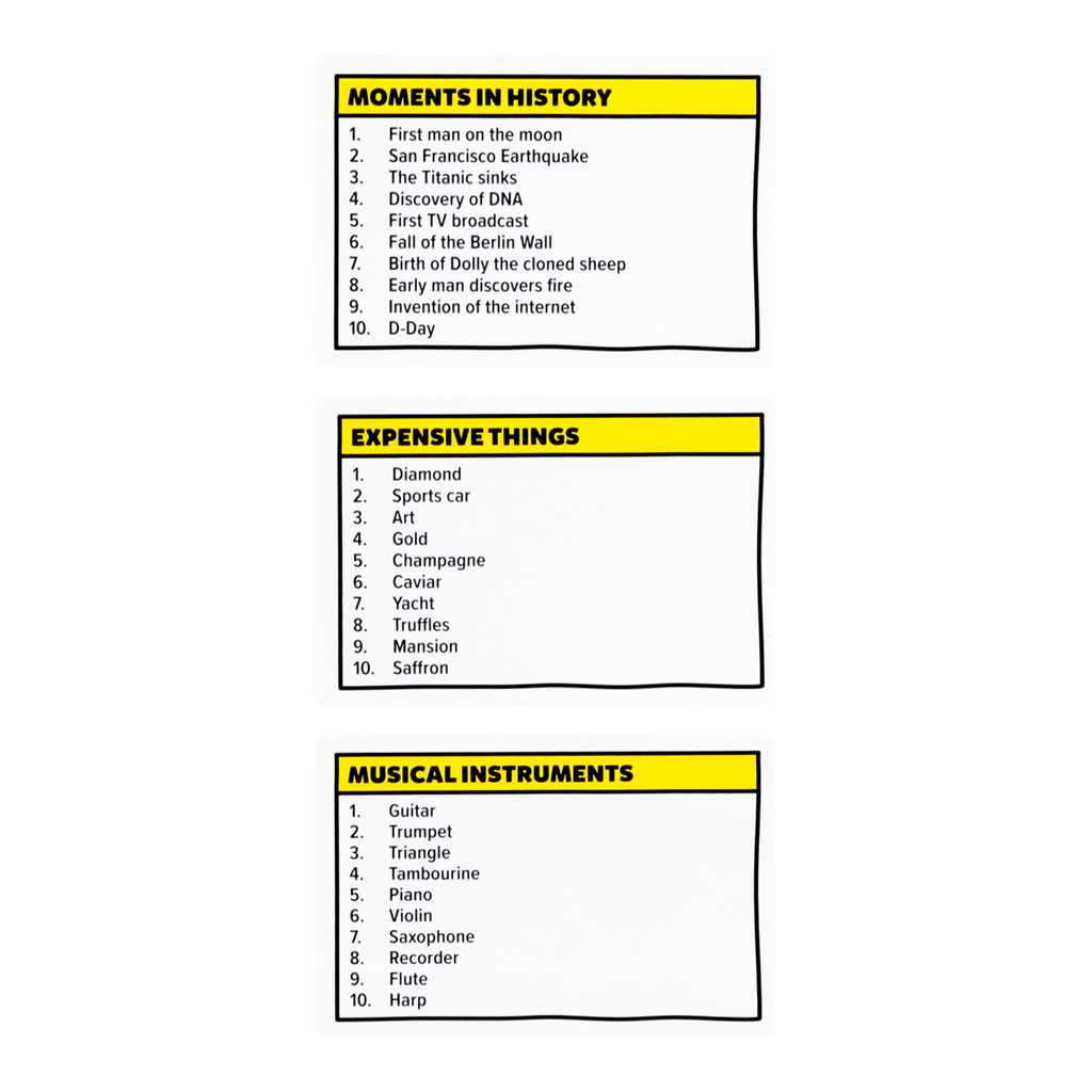 This fast and fun game includes lists of over 1000 items to draw across over 100 categories! From 'Easy', 'Tricky' and 'Almost Impossible' drawing suggestions to attempt.