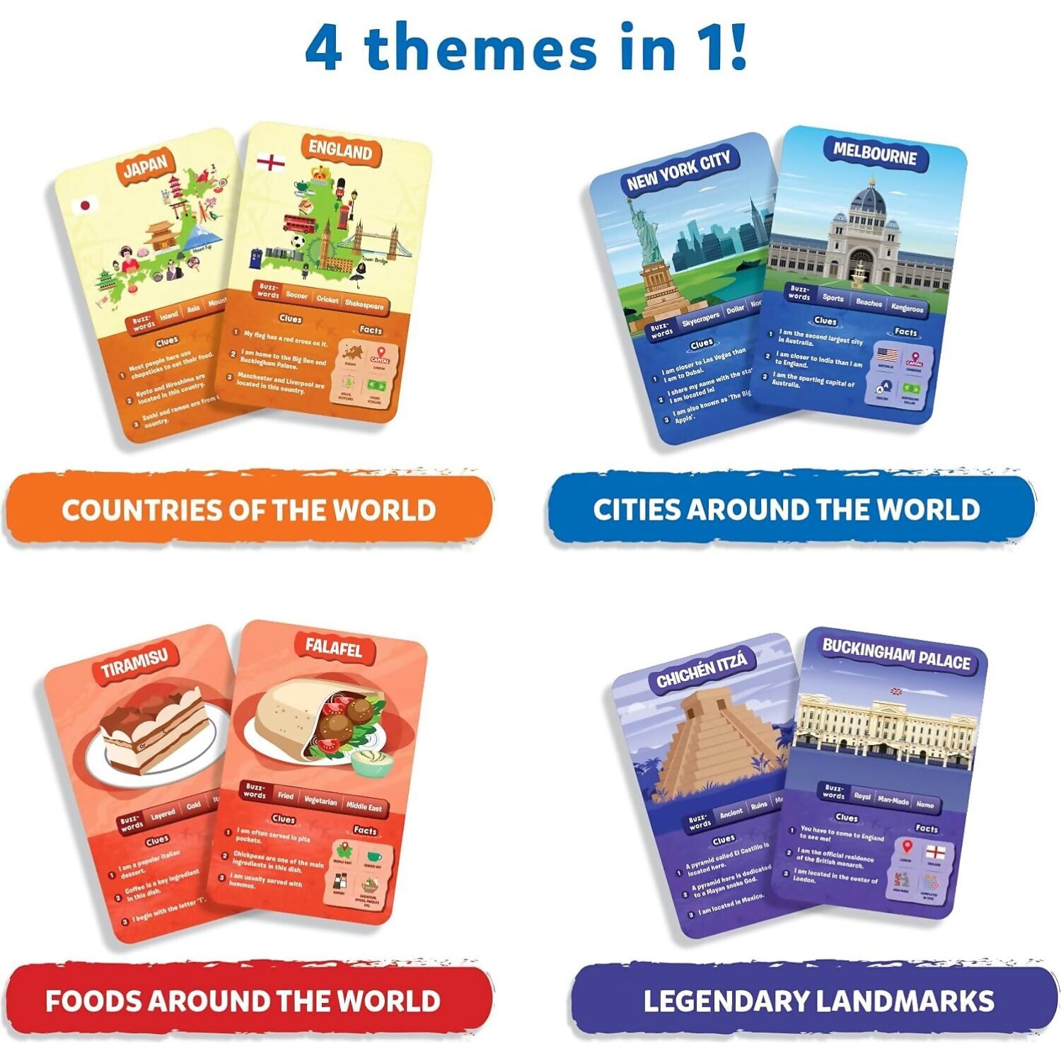 The game is an exciting journey of questions where players roll the die to fly to different destinations around the map and conquer Landmarks, Foods, Cities & Countries. Players ask up to 10 ‘yes’ or ‘no’ questions to guess what’s on the Game Cards. Answering correctly allows them to conquer a spot. The first player to conquer five spots wins.