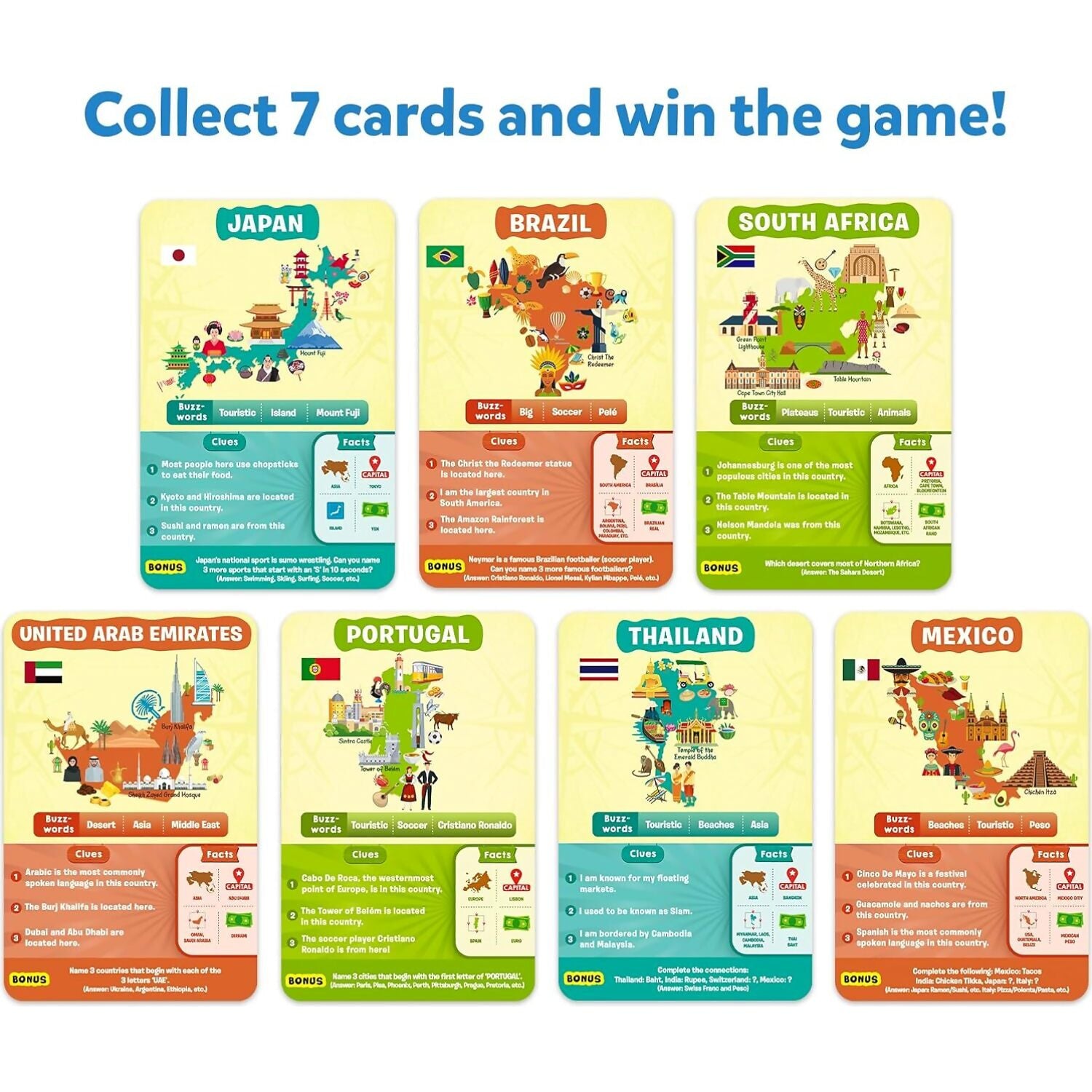 - ULTIMATE GUESSING GAME: Divide yourselves up in teams, or play one on one, ask up to 10 questions to guess the country on the Game Card! Is it an island Is this country in South America Do people pay with euros in this country Think hard, ask intelligent questions and the be the first player to win 7 Game Cards!