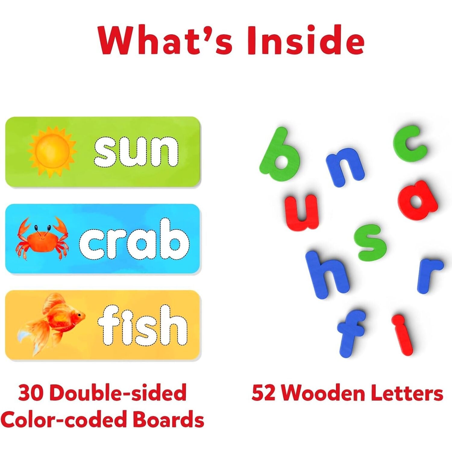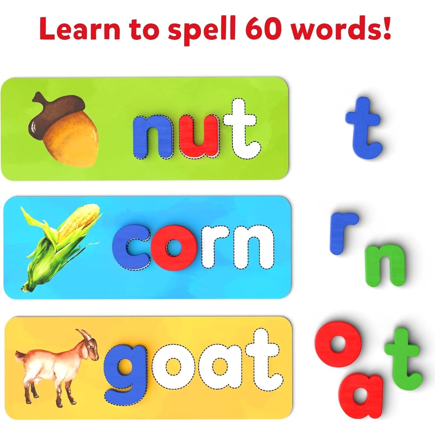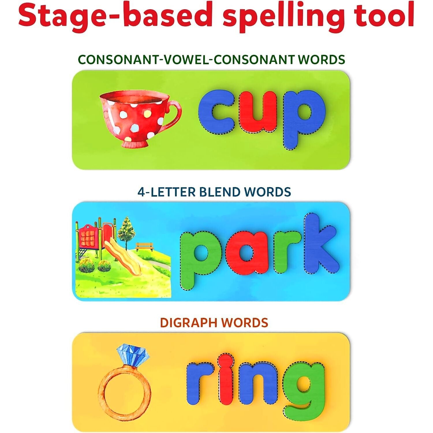 Help your child learn to spell, one step at a time! With color-coded boards, Ready To Spell will guide your child progressively to learn how to spell Consonant-Vowel-Consonant Words, 4-Letter Blend Words, and Digraph Words with ease.