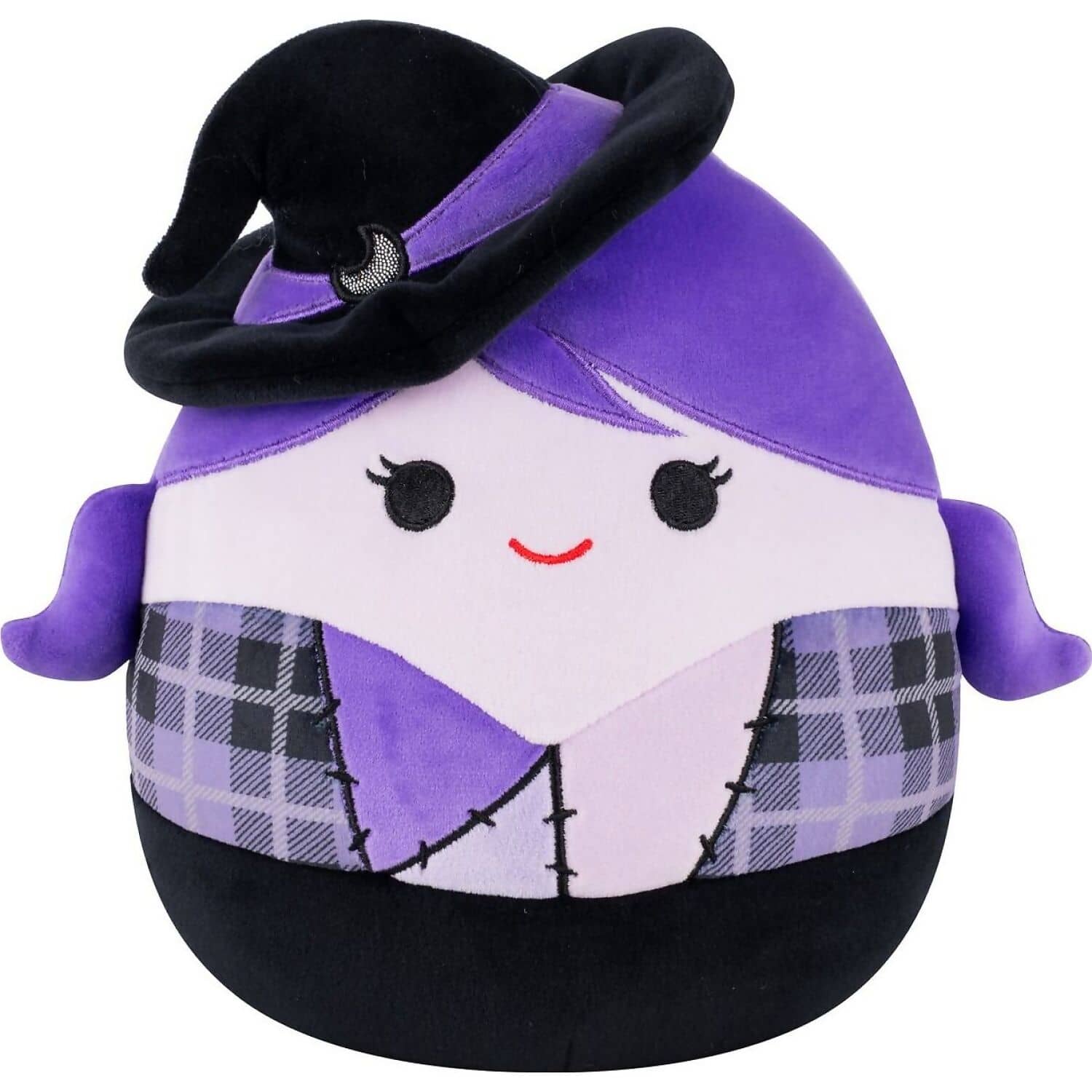 Phobia the Purple Witch is a bold and enchanting member of the Squishmallows Halloween collection, designed to cast a spell of comfort and charm. With her signature black witch hat, purple band and silver buckle, Phobia pairs magical flair with a soft, squeezable body. Her embroidered smile, purple hair, and plaid-accented outfit bring a playful twist to classic Halloween style.