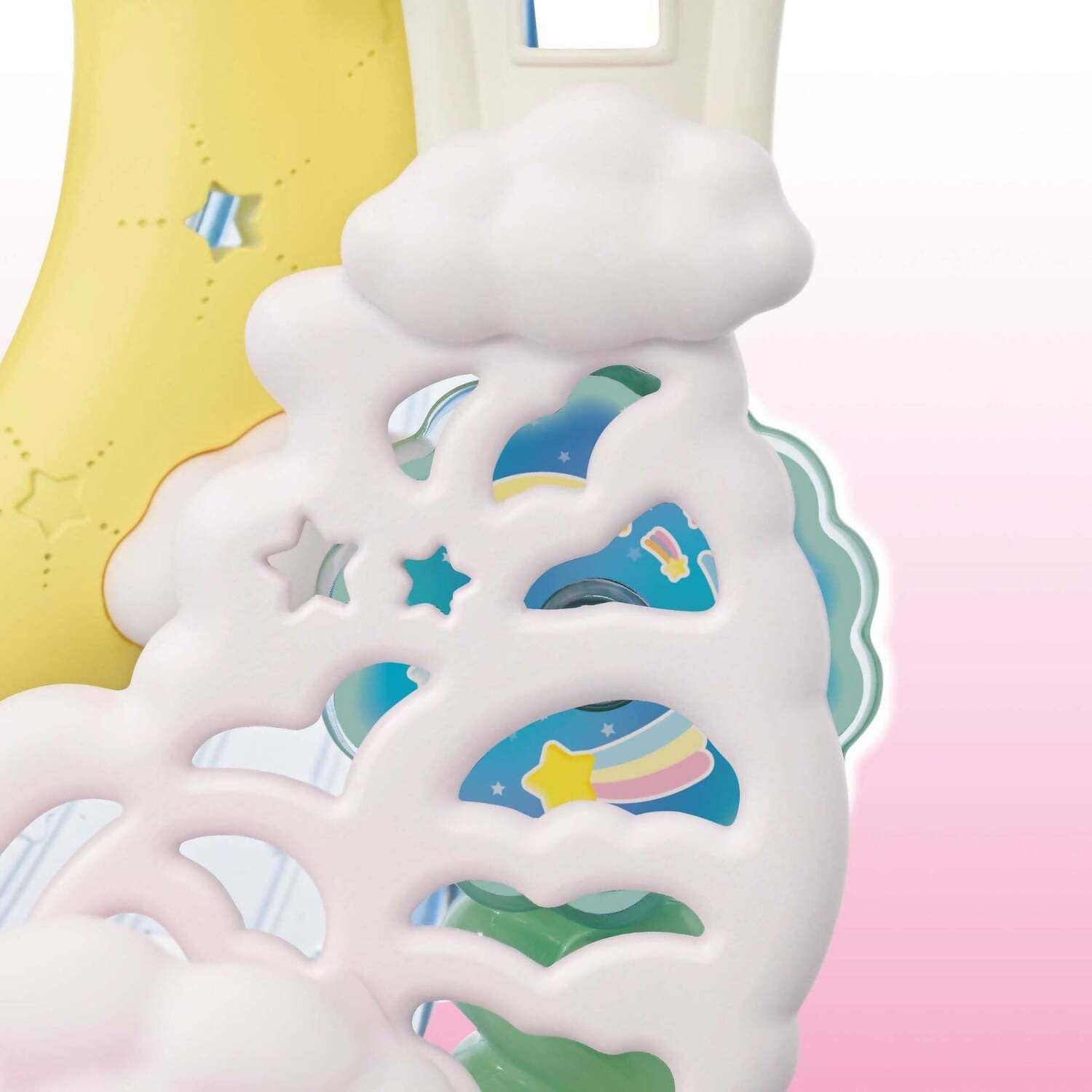 Heavenly fun with the magical airship from Sylvanian Families! This magical set contains the cute milk cat baby Nicolo in a cute shooting star outfit and an airship with many great functions.