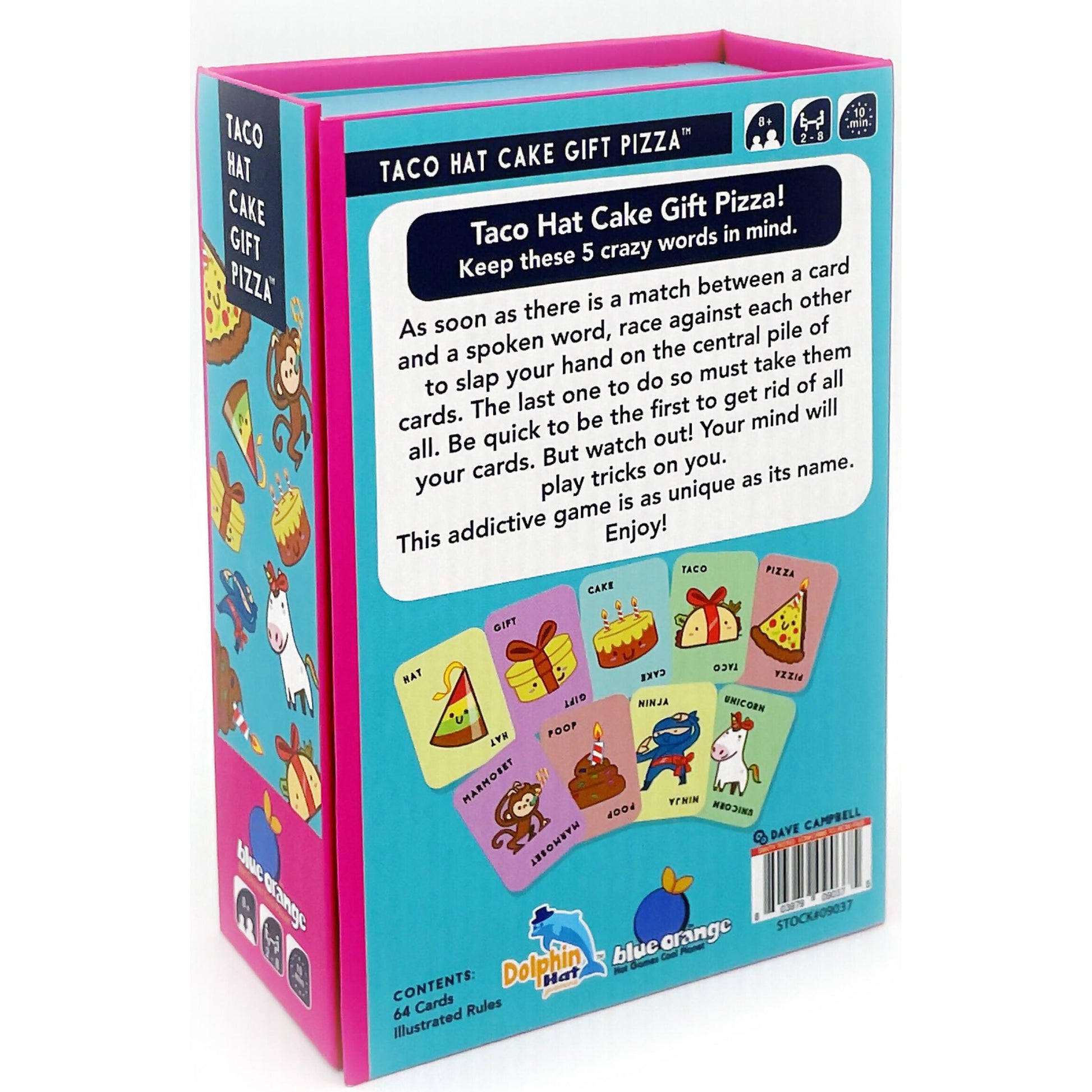 Taco Hat Cake Gift Pizza Game is a fast-paced card game that tests your reflexes and observation skills. In this game, players race to be the first to place their hand on the central pile of cards while following the rules shown on the cards. The player with the most cards at the end of the game wins.