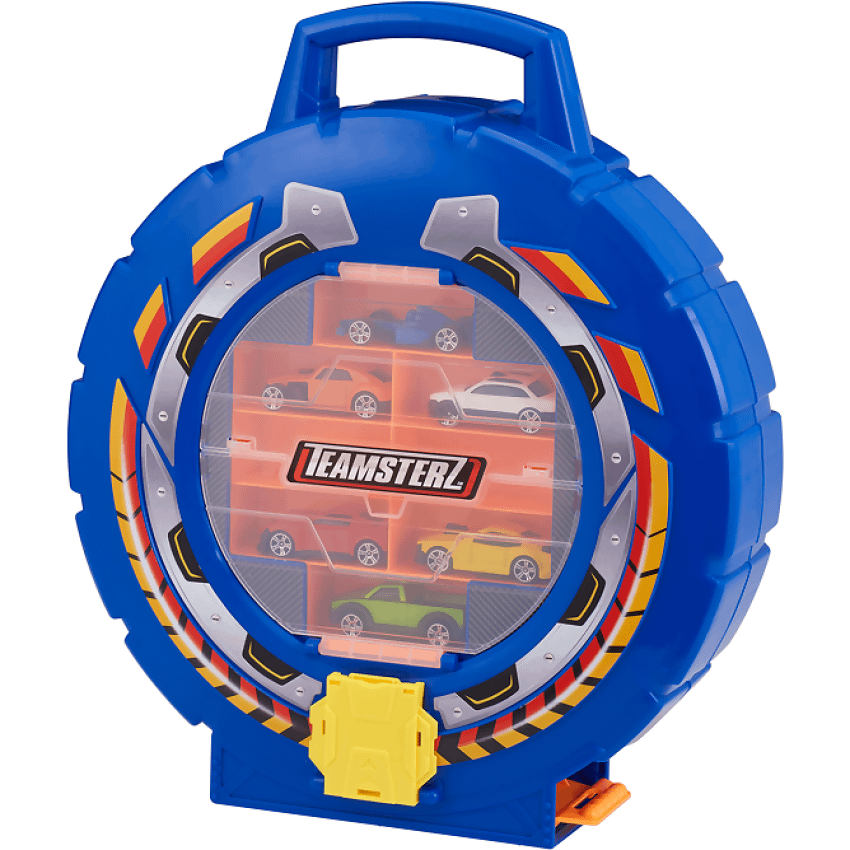 Transport your cars with a twist with the Teamsterz Load & Launch with 6 cars! This wheel shaped carry case which holds up to 23 cars, also doubles as a car launcher!