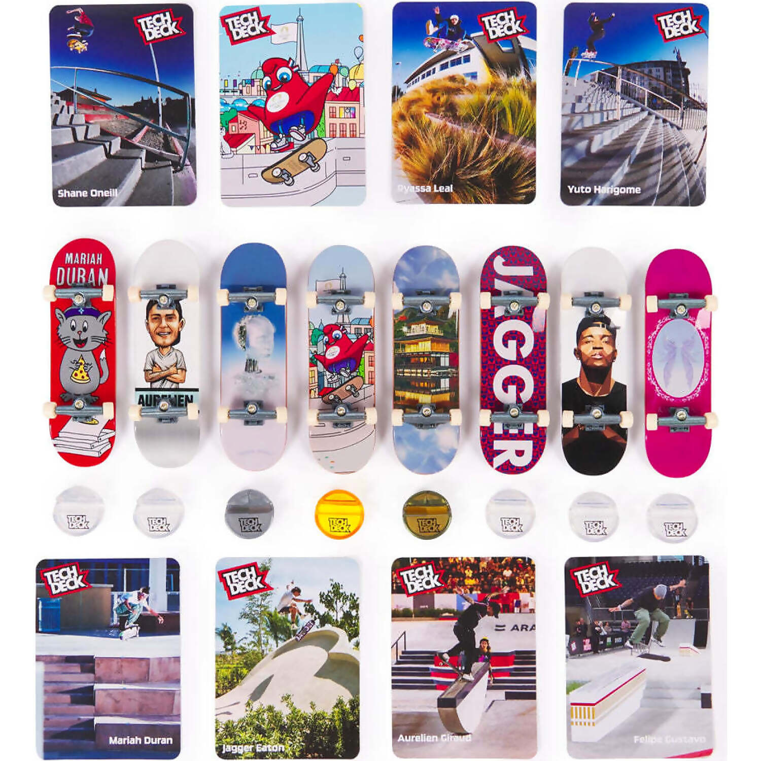 Bring the Olympics home with the Tech Deck Competition Legends 8-Pack set of Fingerboards. This pack brings you real deal with authentic fingerboards from real skate companies. Each board features graphics from your favorite Olympic Games Paris 2024 skateboarders around the world like Mariah Duran, Jagger Eaton and more.