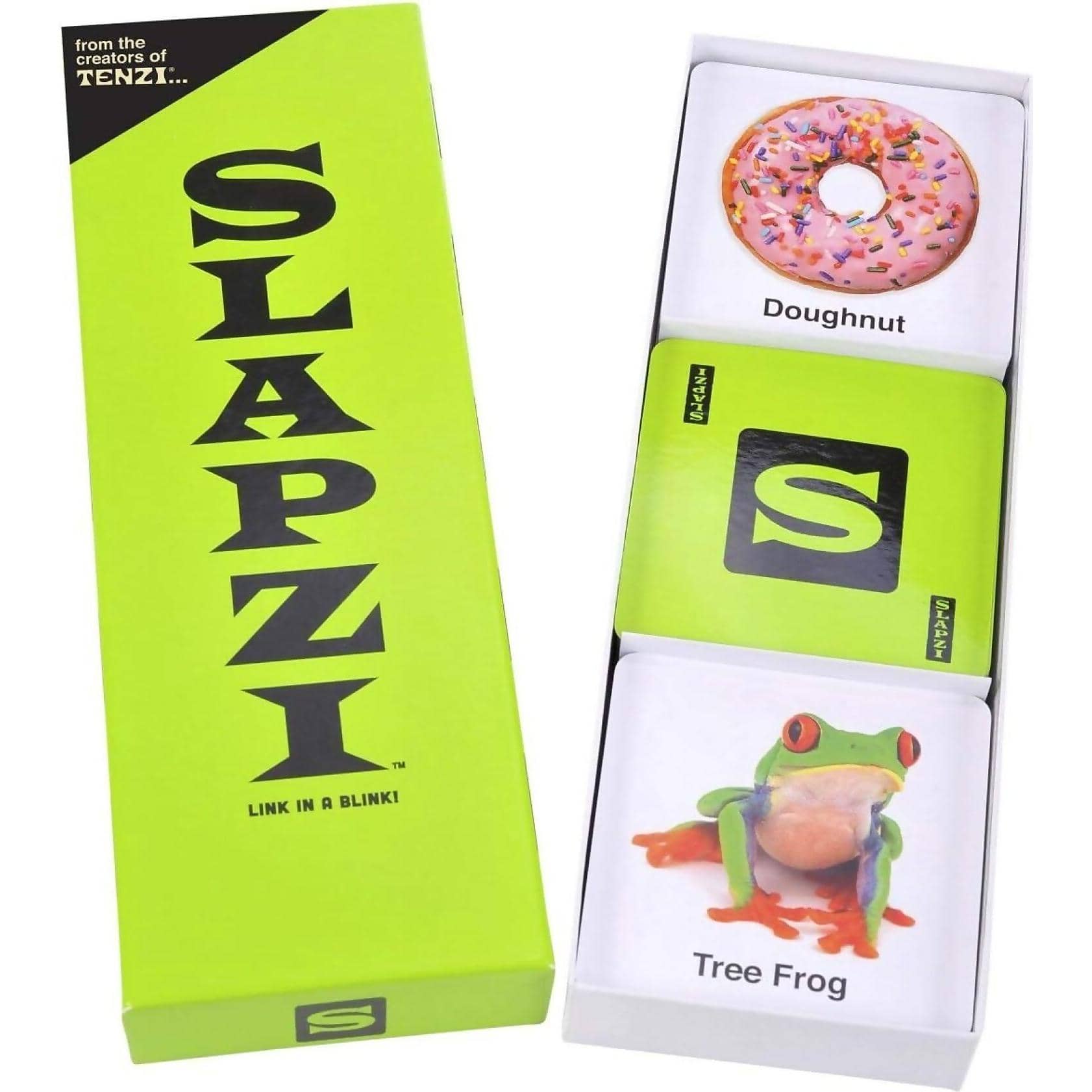- SIMPLE SPEED: SLAPZI is all about speed, it’s super simple to learn and super fast to play. Be the first to match the right picture card to the right clue card to win the round.