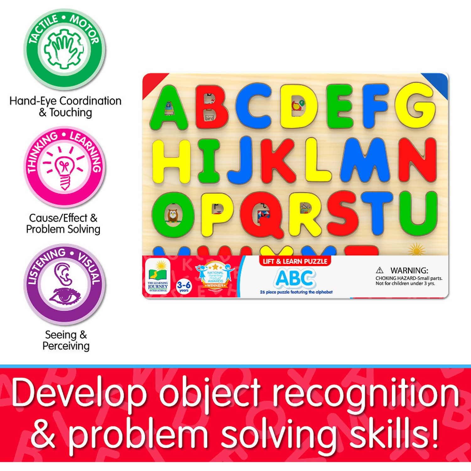 This fun and colorful tray puzzle features the alphabet. Children will be encouraged to develop different skill sets to prepare them for school, such as hand-eye coordination and problem solving.