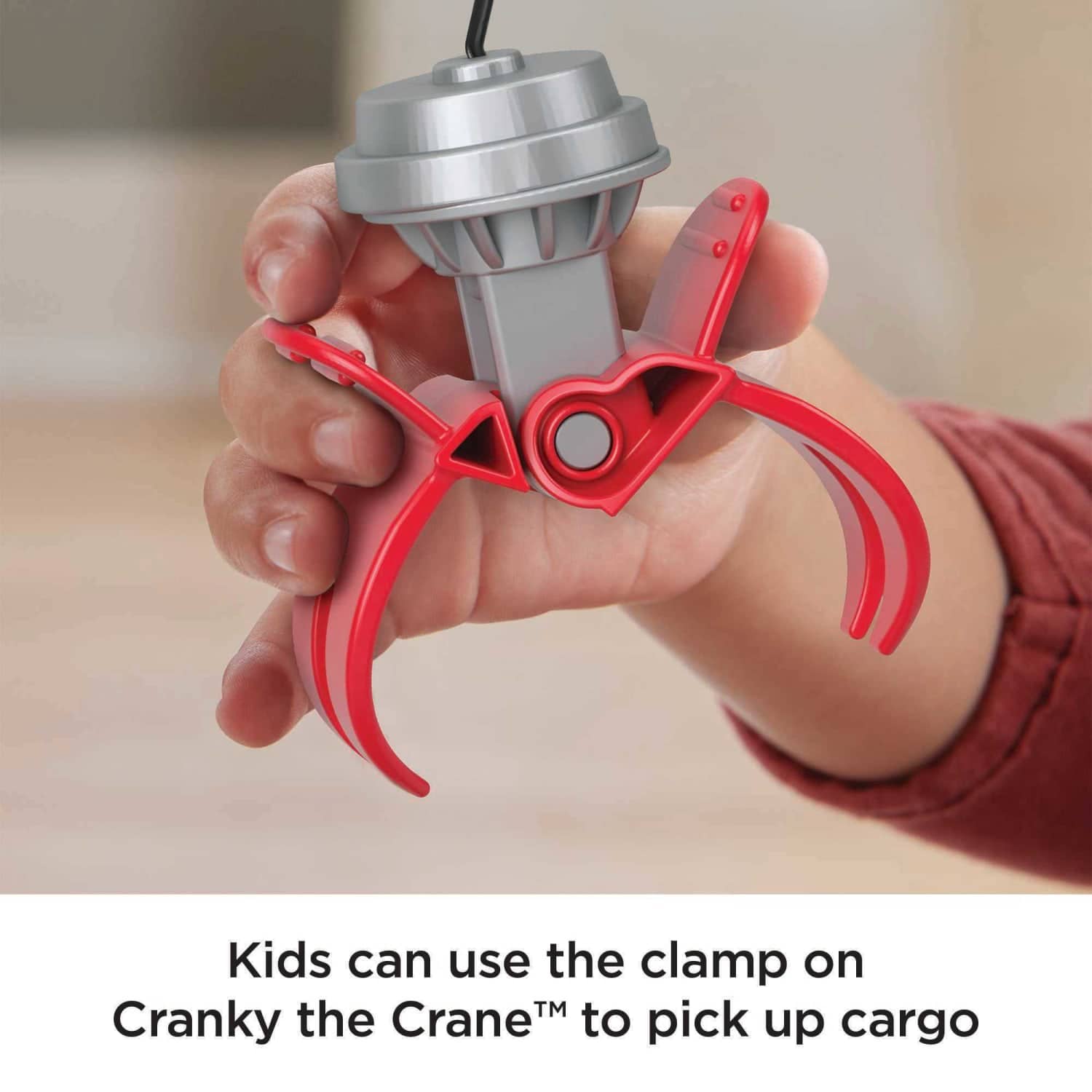 - Attach the magnetic claw or engine cradle to Cranky the Crane™ to lift and load cargo from Bulstrode the Barge to the docks