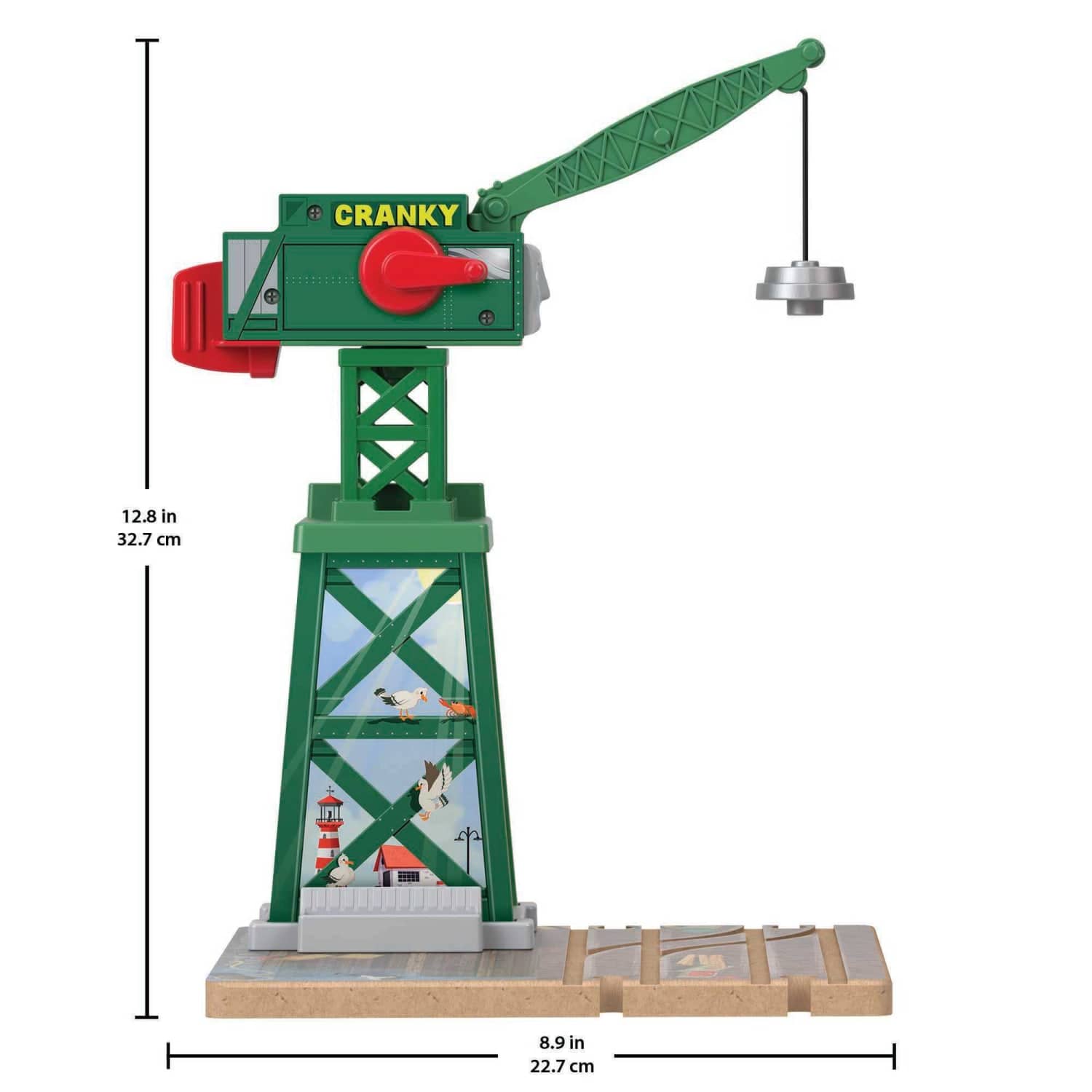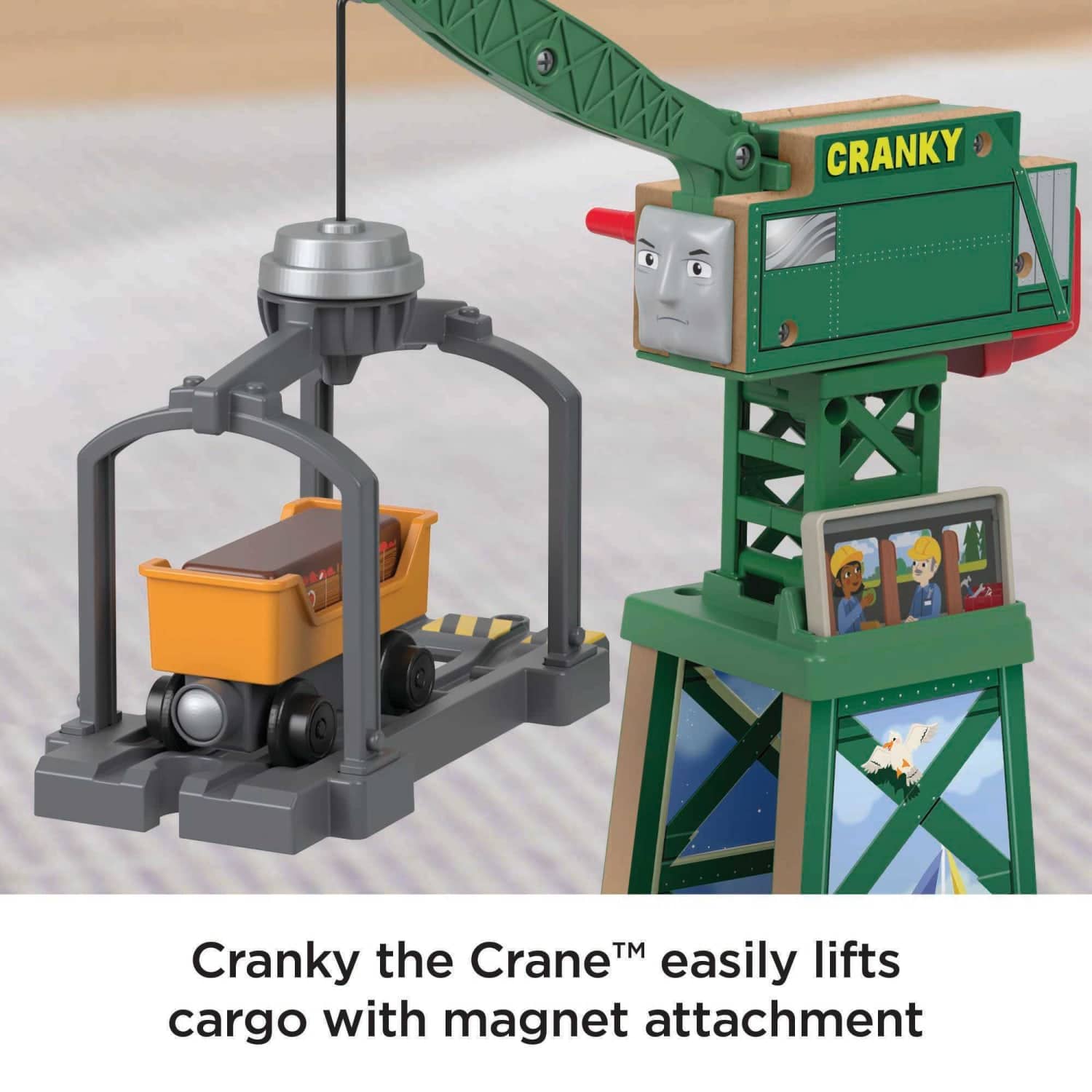 Young conductors can recreate the hustle and bustle loading action of the island of Sodor with the Thomas & Friends™ Wooden Railway Brendam Docks Playset from Fisher-Price®. Designed and crafted from sustainably sourced wood, this Brendam Docks playset features a working Cranky the Crane™ with an attachable claw and an engine cradle, a large Bulstrode the Barge with loading deck, and cargo pieces for lots of fun lifting and loading action. Kids can bring their favorite train engines to the side-by-side Clackety Track™ base to recreate scenes from the show! (Engines sold separately and subject to availability.)